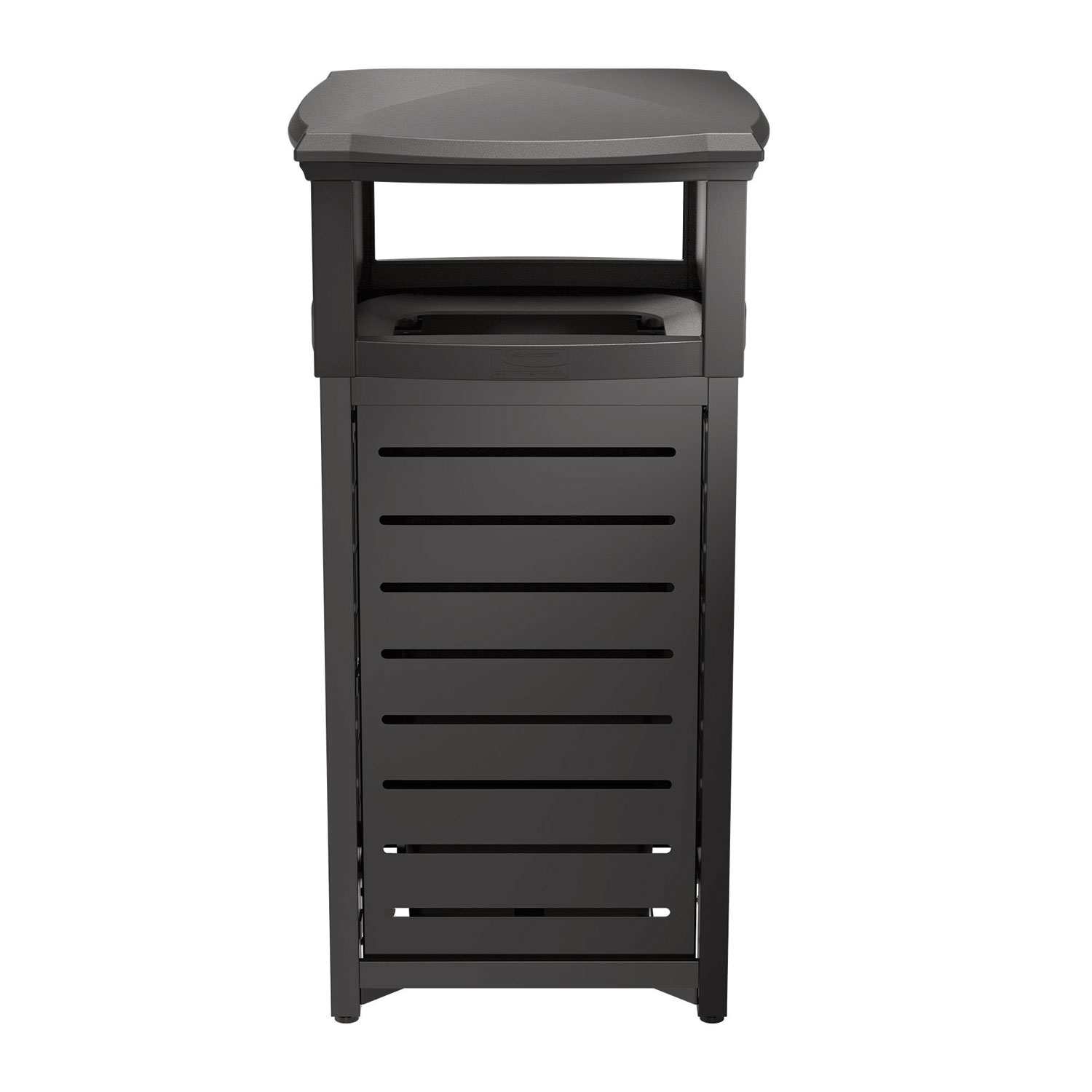 Outdoor Decorative Metal Square Trash Can with Two-Way Lid, 29 gal, Plastic, Black