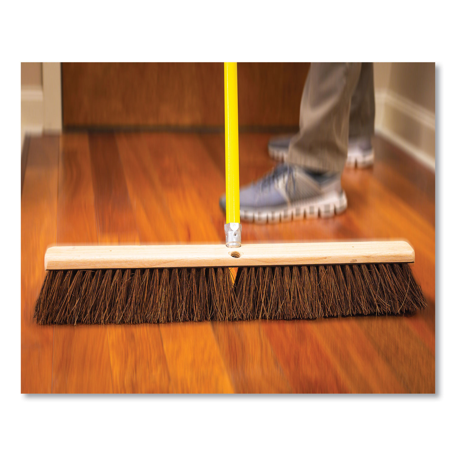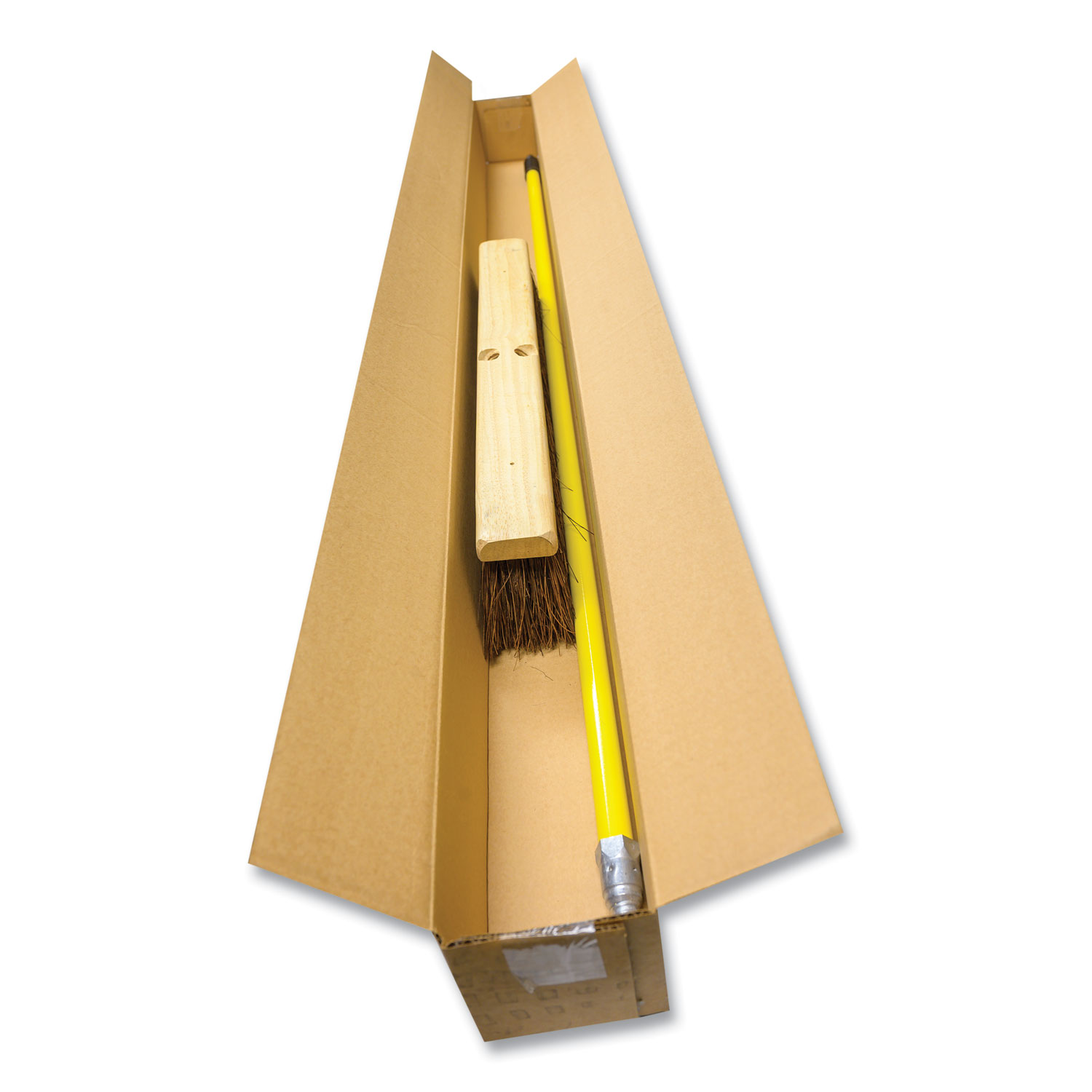 Palmyra Push Broom Kit, 24 x 64, Palmyra Bristles, Metal Handle, Yellow/Brown