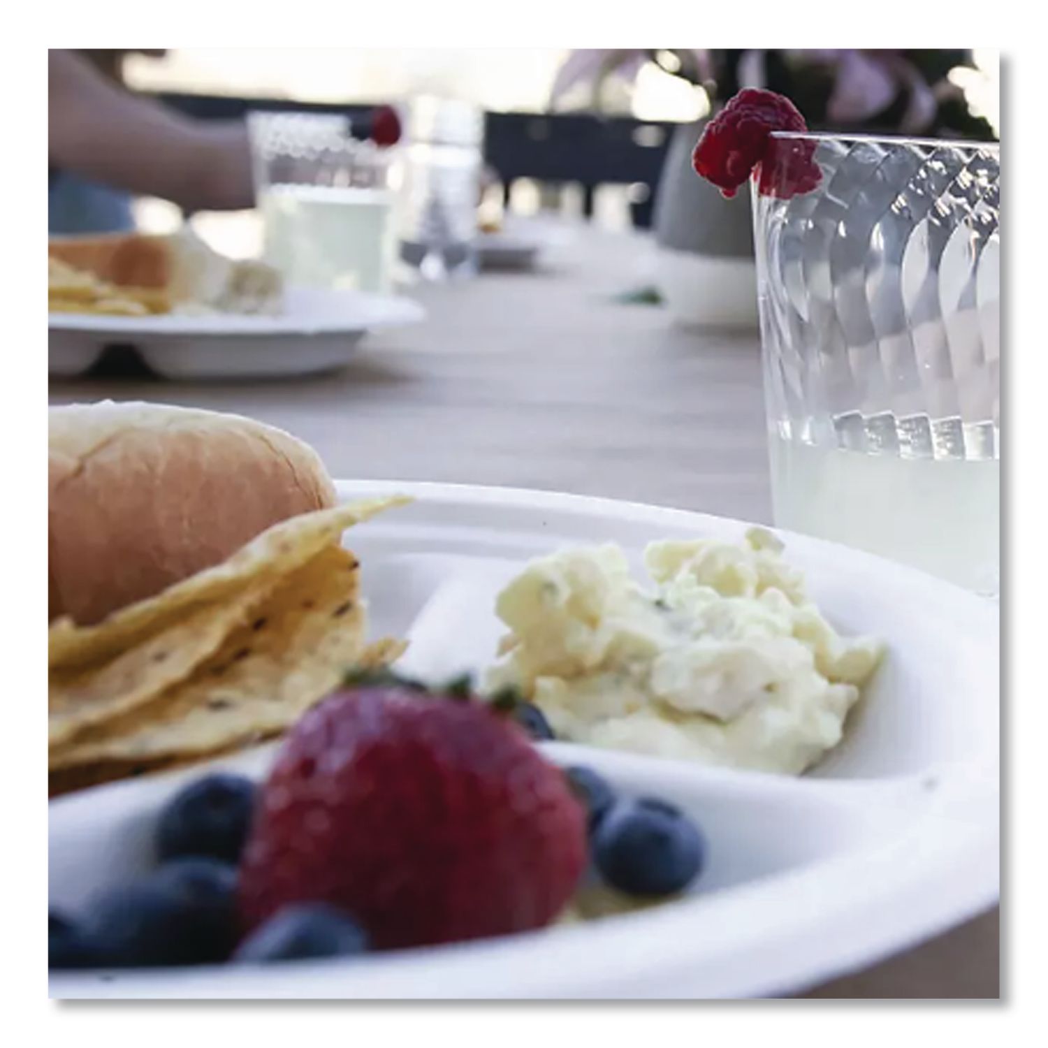 Get the impressive strength of molded fiber at an economical price. Extra-rigid dinnerware supports whatever you dish out, without requiring wasteful doubling. Decorative, highly practical rim edge helps prevent spillage. Three-Compartment Plate. Dinnerware Type: 3-Compartment Plate; Material Type: Paper; Material(s): Molded Fiber; Shape: Round.