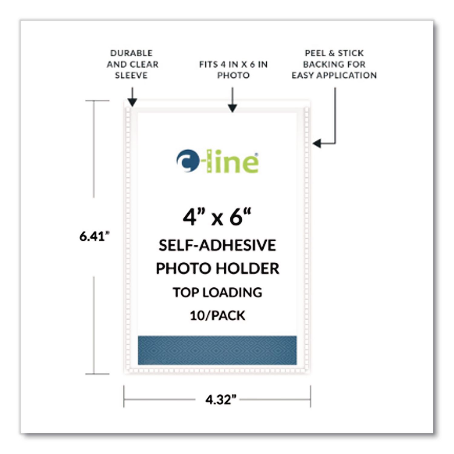 Self-adhesive, clear, acid-free polypropylene holders attach photos to files, binders, reports and more. Holders can fit photo up to 4″ x 6″ in size, horizontal or vertical. Store photos almost anywhere by using the self-adhesive feature of this poly holder. Storing photos in the Peel & Stick Photo Holder will help to keep them in their original state and remain visible. This product will be cheerfully replaced with one of equal value if defective in materials, manufacturing or packaging at the time of purchase. Except for such replacement, this product is sold without warranty or liability even though defect, damage or loss is caused by negligence or other fault. Photo Albums Accessories Type: Self-Adhesive Holder; Width: 4.38″; Height: 6.5″; Photo Width: 4″.
