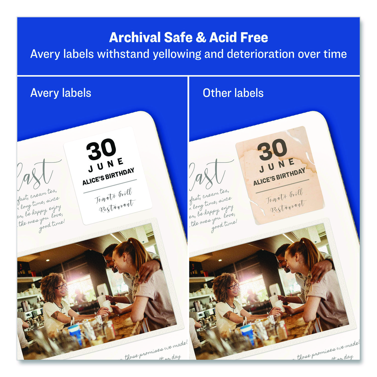 Need something strong enough to resist extreme conditions? These permanent ID labels identify equipment, stored items and belongings with strength to spare. What’s the secret to their tenacity? It’s a combination of acid-free, archival-safe construction and stick-and-stay durability. Adding names, barcodes and information isn’t tough at all. Just complete a free template from Avery® Design & Print and print with a laser or inkjet printer. When you’re looking for a sturdy label, these are hard to resist. Sure Feed® technology ensures reliable printer feed through. Shape: Rectangular; Label Size – text: 2 x 2.63; Label Color(s): White; Color Family: White.