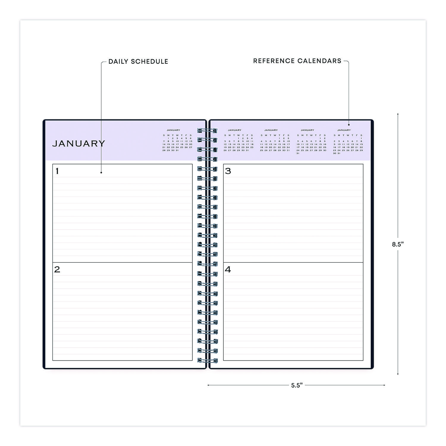 Start keeping track of your agenda at any point during the year with the Blue Sky® Perpetual Daily Planner. Undated, two-days-per-page format is ideal for flexible, day to day planning. Additional ruled notes pages in the back of the book accommodate any essential detail you wish to capture. Durable cover and snag-free, twin-wire binding help ensure that this planner maintains its professional appearance. Dated: No; Academic Year: No; Calendar Format: Daily; Calendar Spread Format: Two Days per Page.