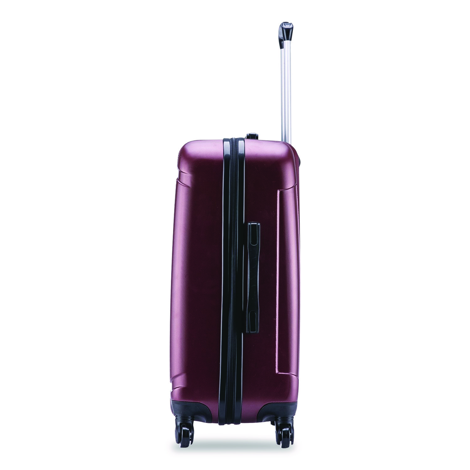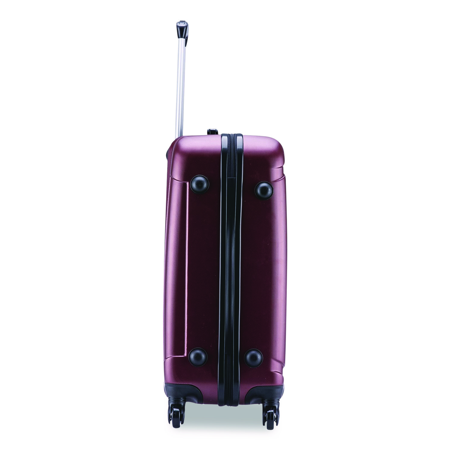 Features a contemporary, impact-resistant, functional design. The suitcase is made of engineered material with a micro-diamond finish. Top and side ergonomic gel handles ensure comfortable and easy luggage lifting. It comes equipped with a push-button locking internal retractable trolley system. Suitable for most major airlines. Color(s): Wine; Color Family: Red; Material(s): Polycarbonate/ABS Plastic; Carrying Handle: Yes.