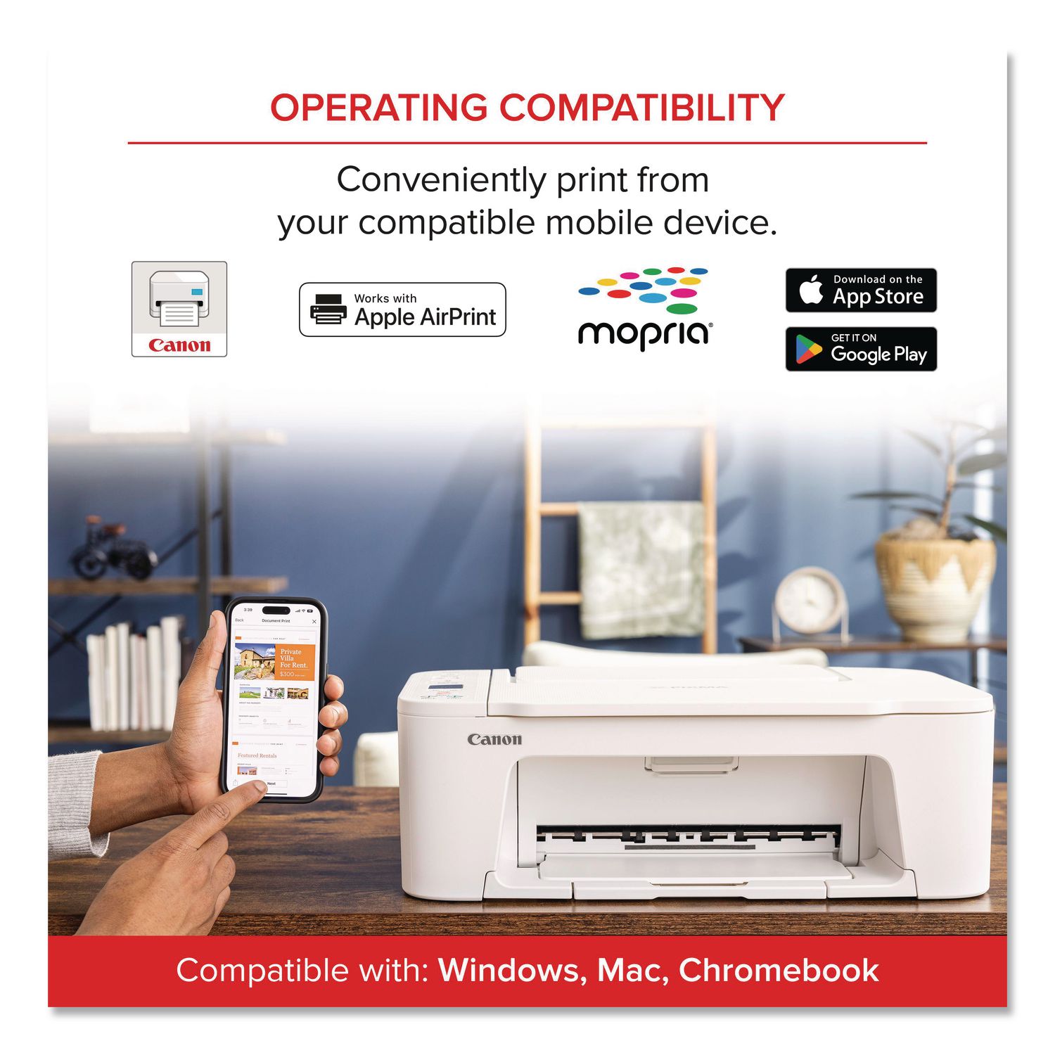Welcome to simple and intuitive printing with the PIXMA TS3720 Wireless All-in-One Printer. Easy to set up and easy to use with a simple to replace two-cartridge FINE Hybrid Ink System, improved Wi-Fi® setup through Wireless Connect, a rear paper tray for quick reloading of plain or photo paper, plus a flatbed scanner—the PIXMA TS3720 is more than your basic printer. You can also easily print from your mobile devices using the Canon® PRINT app, AirPrint®, Mopria® Print Service, or from computers and Chromebook with built-in Wi-Fi®. Machine Functions: Copy; Print; Scan; Printing Type: Inkjet; Network Ready: Yes; Print Resolution (Color) (Width x Height): 4800 x 1200 dpi.