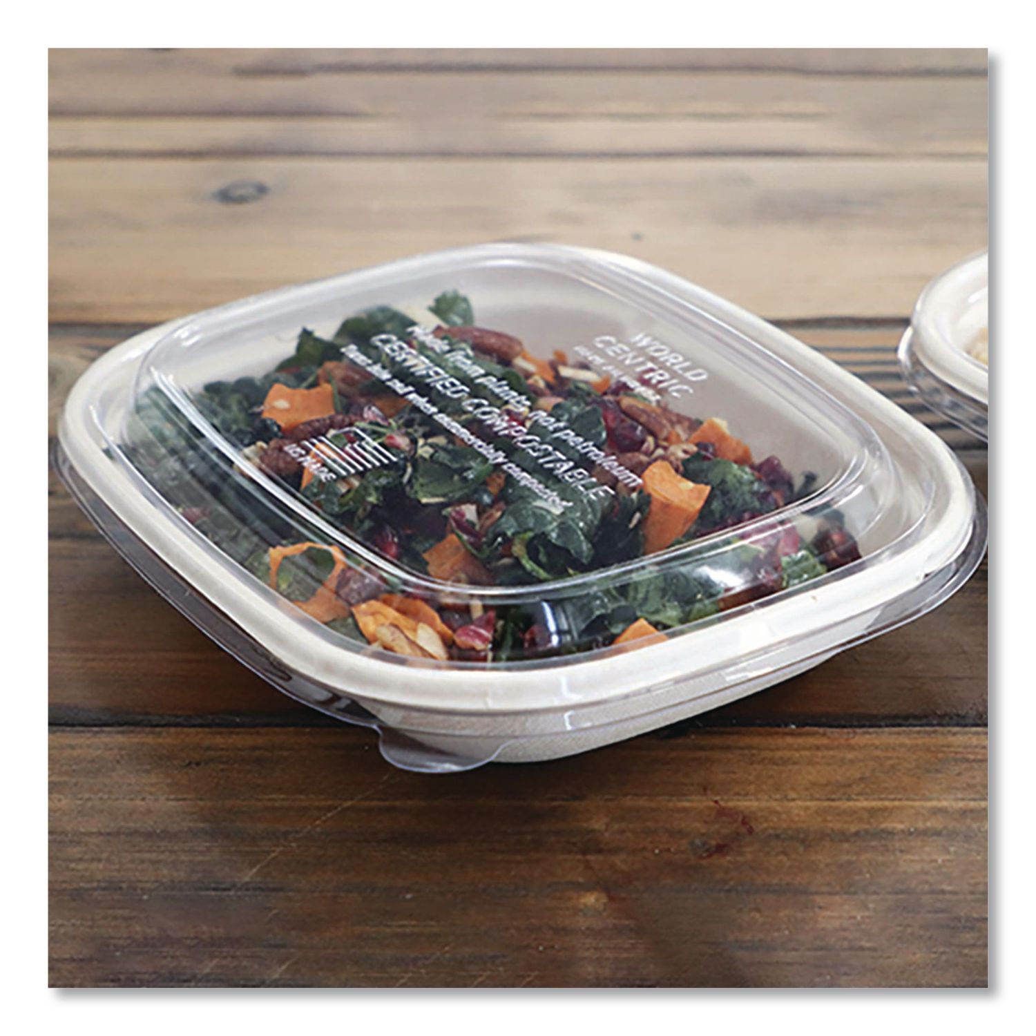 World Centric® compostable clear lids for fiber containers are made from PLA, a bio-based plastic made from plant sugars. Great for takeout at restaurants, cafes and food trucks, these takeout container lids are freezer safe and make viewing the food easy for a quick selection. PLA products are suitable for cold to warm foods, and should be stored in a cool place below 110°F and out of direct sunlight. As a certified B Corporation, World Centric® is dedicated to upholding the highest standards of social and environmental responsibility, transparency, and accountability. We proudly give 25% of our profits to grassroots organizations driving global change. Choose World Centric® compostable foodservice products and make a difference today! Food Container Type: Lid; Material(s): PLA; Material Type: Plastic; Color(s): Clear.