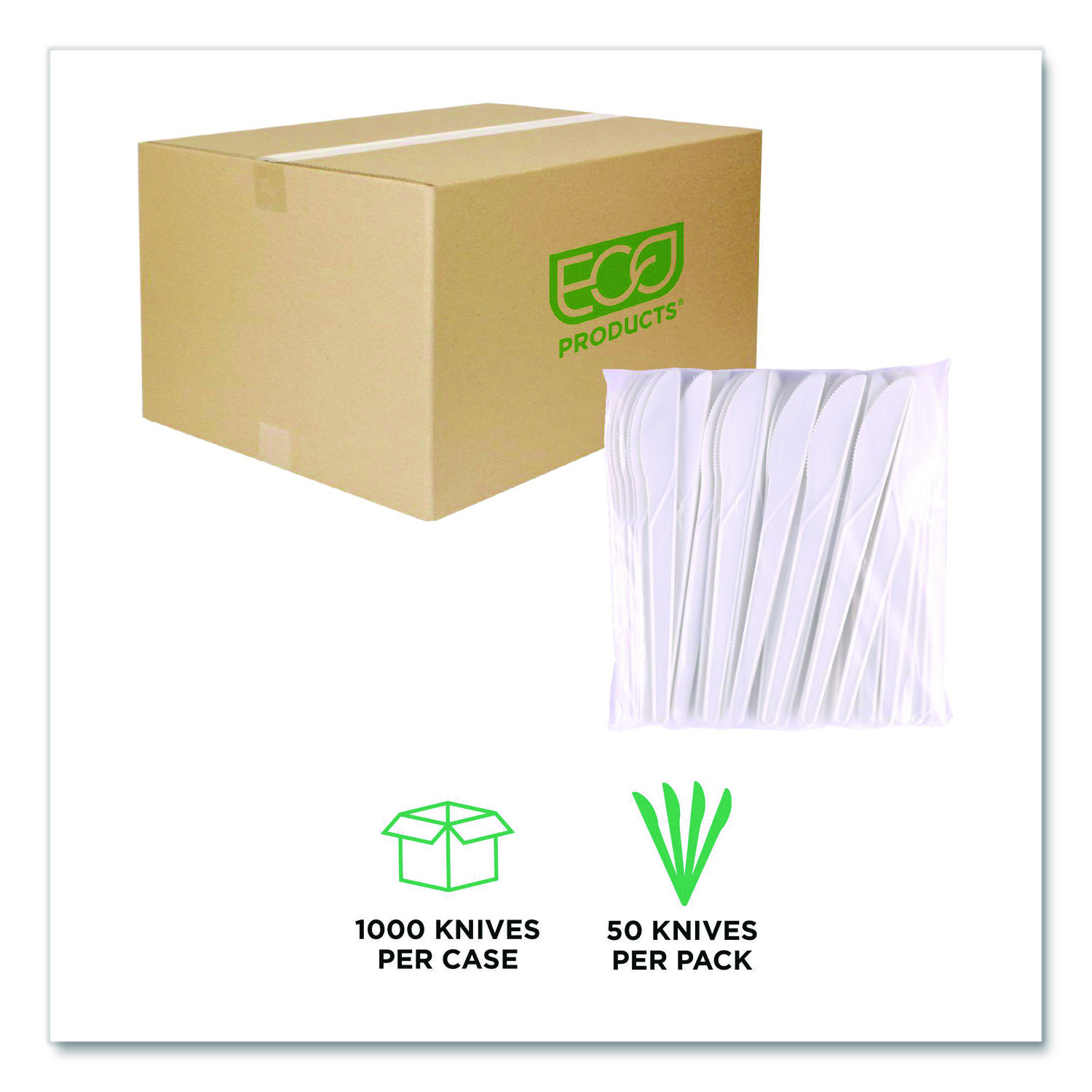 Eco-Products Compostable PLA Plastic Cutlery, the ultimate in sustainable dining solutions. Disposable cutlery, crafted from renewable materials made from plants. Designed for durability, this sturdy and strong cutlery ensures a reliable dining experience. These BPI-certified utensils are fully compostable, and completely degrade within six weeks of placement in commercial composting facilities. A great choice way to help you maintain your commitment to sustainability without sacrificing quality. Utensils Type: Knife; Material Type: Plastic; Material(s): PLA; Color(s): Pearl White.