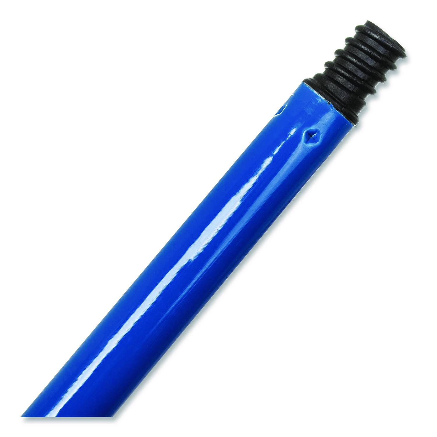 Lightweight handle with plastic thread. Ideal for use with floor brushes, deck brushes and scrubs. Can be used with upright brooms and floor sweeps. Handle has a plastic hanging cap. An economical alternative. Threads are 3/4-5 ACME, the standard thread form in the U.S. Handle Length: 48″; Handle Diameter: 0.85″; Handle Material(s): Metal; Color(s): Blue.