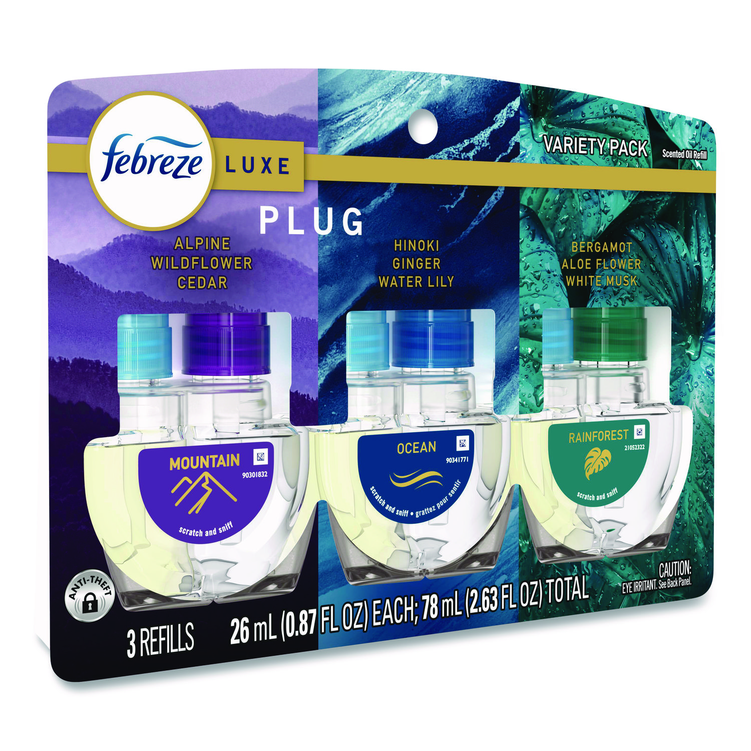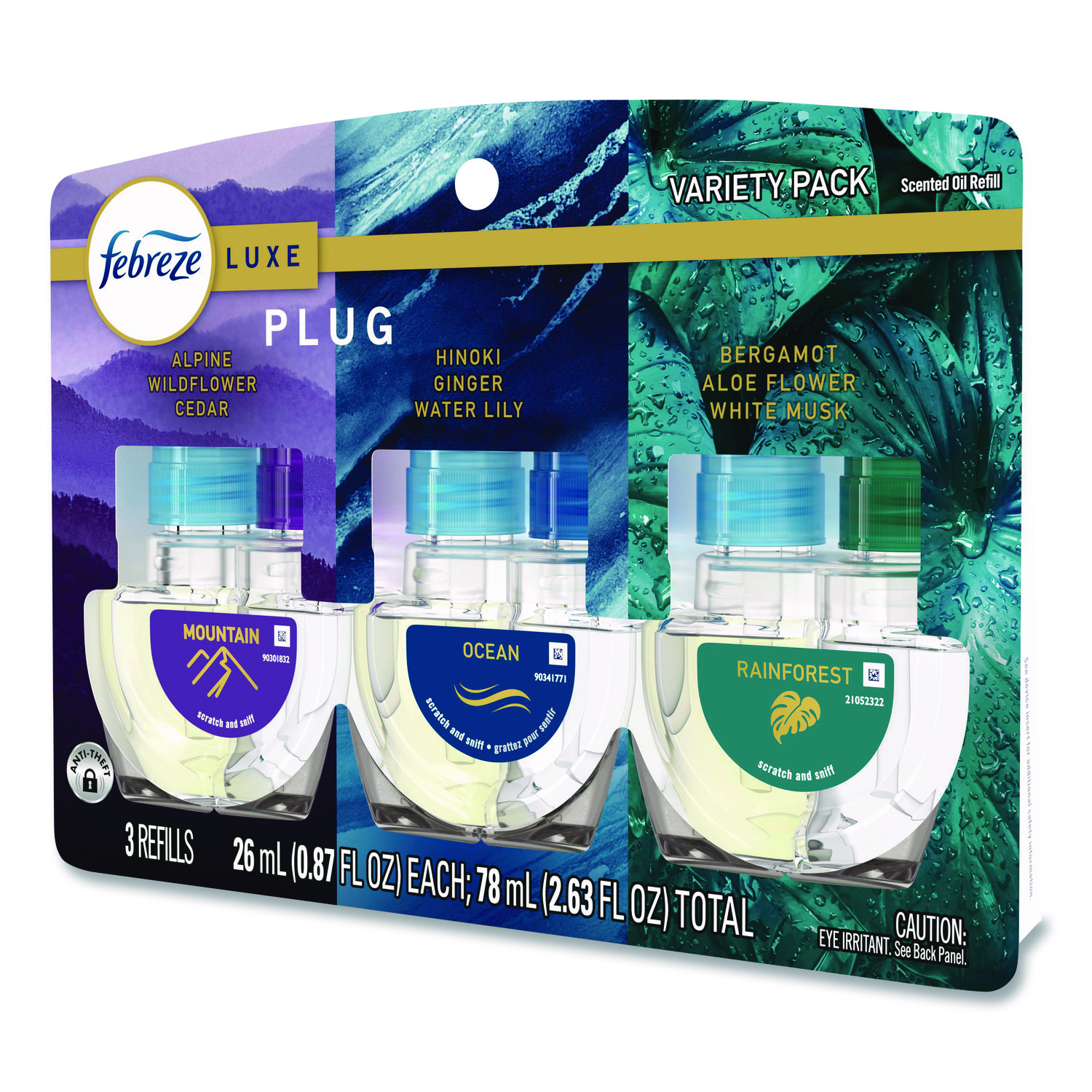 PLUG Air Freshener Refills, Mountain/Ocean/Rainforest, 2.63 oz, 3/Pack, 6 Packs/Carton