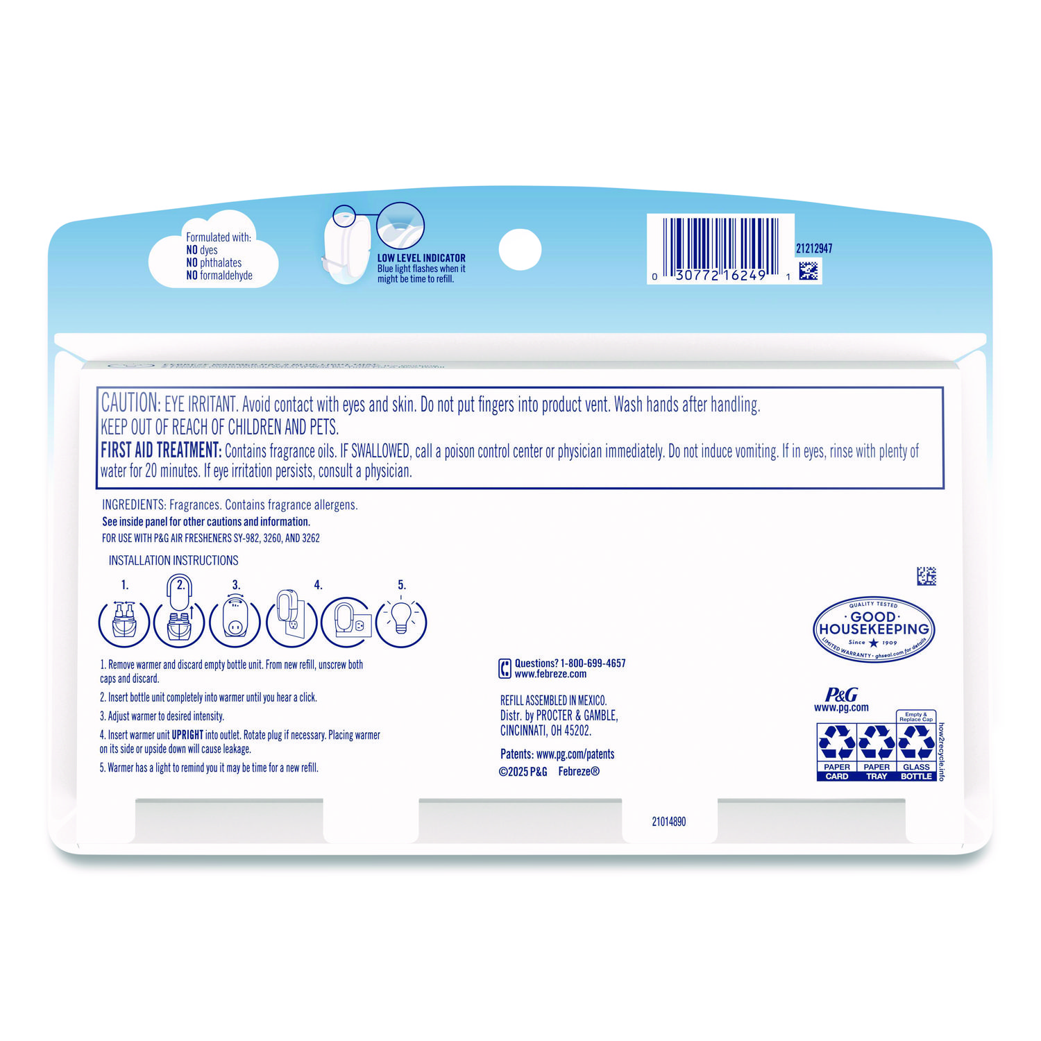 Have you experienced your plug air freshener scent fading? Good news! Febreze Fade Defy PLUG Air Freshener stays true to its name, delivering a first day fresh that lasts a full 50 days (on low setting). Ready to hit refresh and be an A+ odor fighter? Just refill the Febreze Fade Defy PLUG and plug it into any outlet (they’ll even rotate if your outlet is upside down) in any high-traffic area of your home… the kitchen, bathroom, or anywhere else odors like to linger. Bonus? When it’s time for a refill, the automatic air freshener will let you know with its handy low-level indicator light. Scent: Mountain; Ocean; Rainforest; Physical Form: Liquid; Application: Air Freshener; Volume Capacity: 2.63 oz.