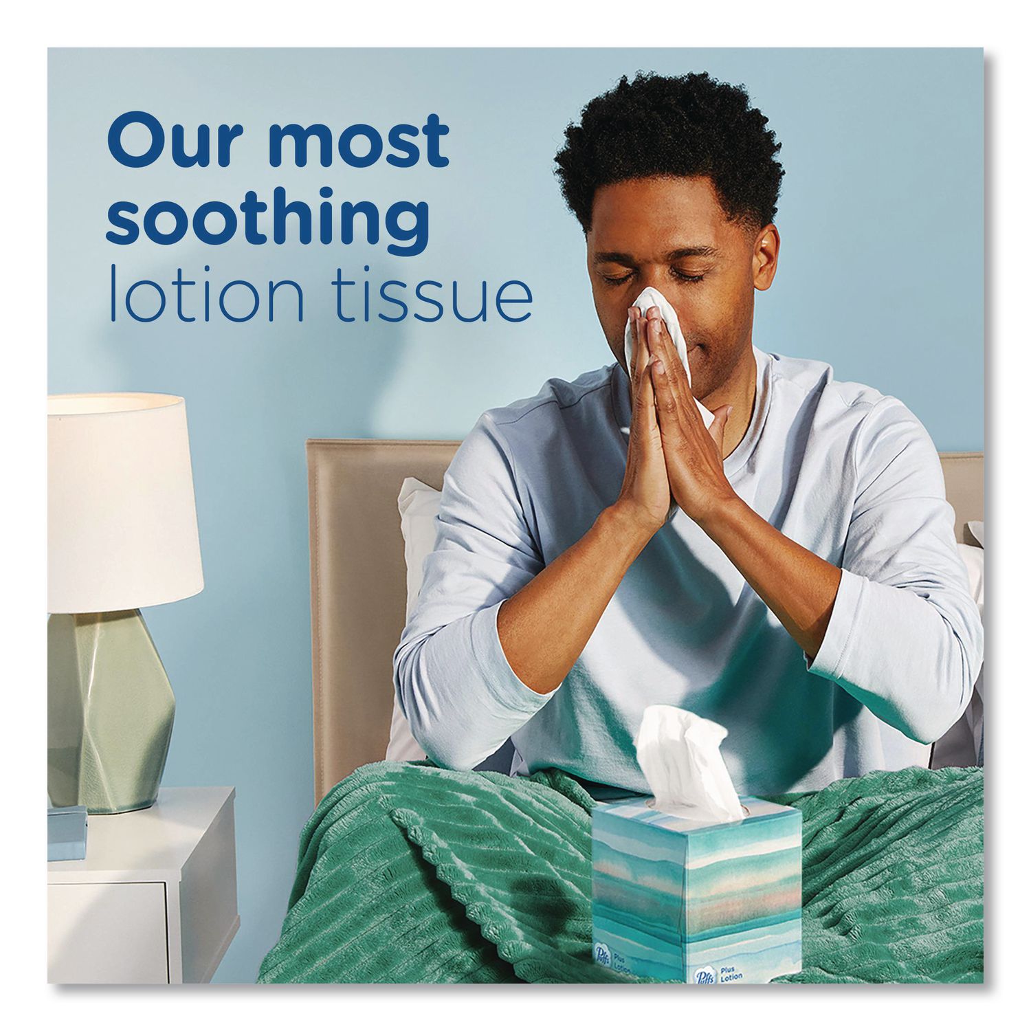 Plus Lotion Facial Tissue, 2-Ply, White, 124 Sheets/Box, 3 Box/Pack