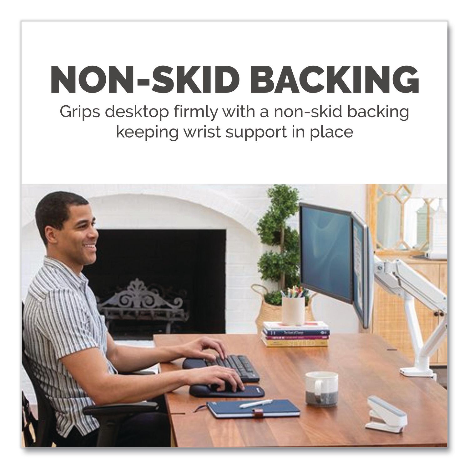 Keep your wrist aligned and express your style with this modern wrist support. The Fellowes® PlushTouch™ ergonomic wrist rest uses innovative FoamFusion™ technology to provide superior comfort and softness to help in relieving wrist pressure. MICROBAN® antimicrobial protection helps keep your product cleaner, and soft breathable material withstands daily wear and tear. MICROBAN® antimicrobial protection. Wrist Filling Material: Foam Fusion; Mouse Pad/Wrist Rest Type: Keyboard Wrist Rest; Color(s): Graphite; Theme: Solid Color.