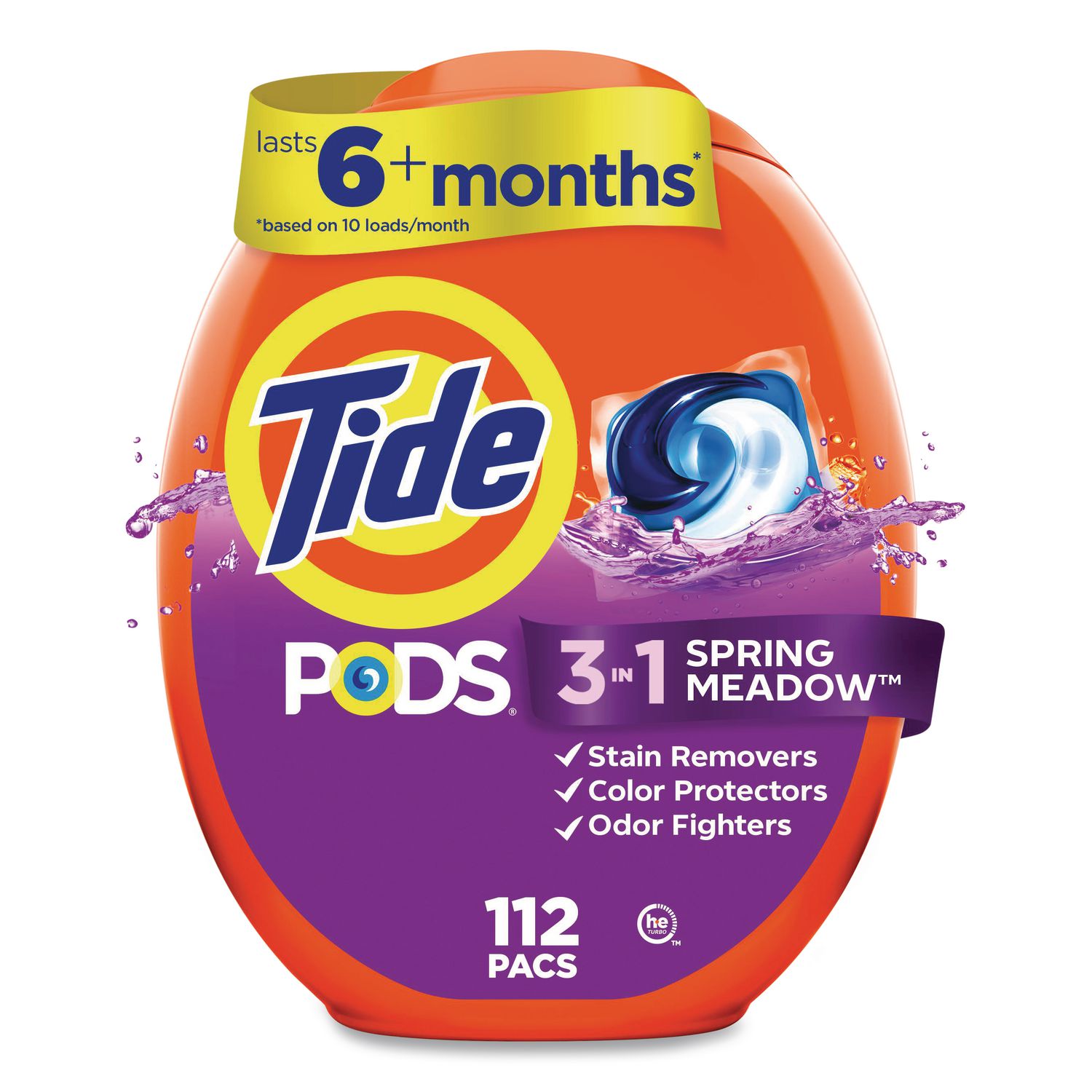 Tide is reinventing the way you do laundry! Tide PODS clean, fight stains, and brighten in one. No more pouring, no more spills-just toss one in. It’s that easy! Ideal for use in all water temperatures. Designed for standard and HE machines. HE Compatible. High Efficiency—Designed for HE machines. Application: HE Laundry Detergent; Applicable Material: Fabric; Dirt Types: Food Stains; Grass Stains; Grease; Oil-Based Soil; Organic Matter; Water-Based Soil; Scent: Spring Meadow™.