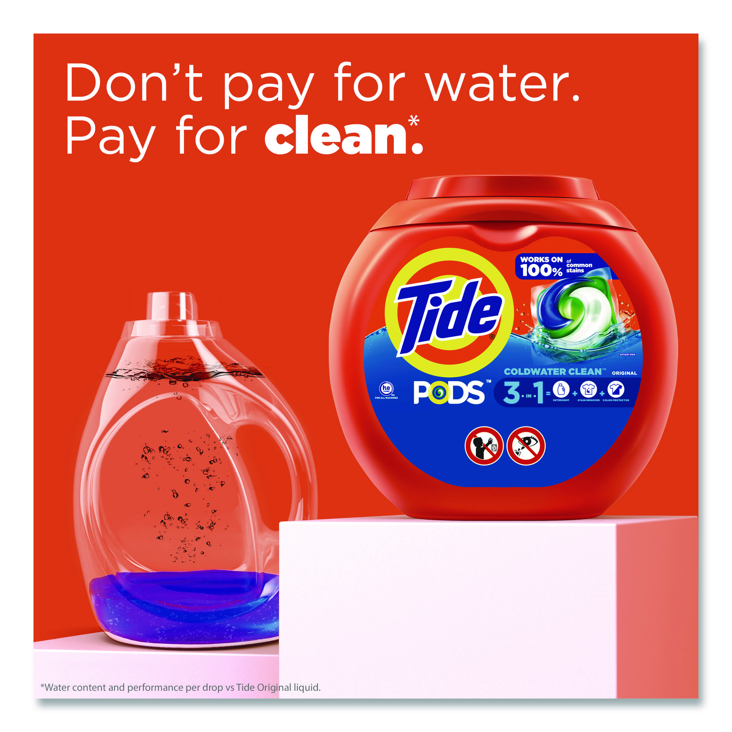 Tide is reinventing the way you do laundry! Tide PODS clean, fight stains, and brighten in one. No more pouring, no more spills-just toss one in. It’s that easy! Ideal for use in all water temperatures. Designed for standard and HE machines. Application: Laundry Detergent; Applicable Material: Fabric; Dirt Types: Food Stains; Grass Stains; Grease; Oil-Based Soil; Organic Matter; Water-Based Soil; Scent: Tide® Original.