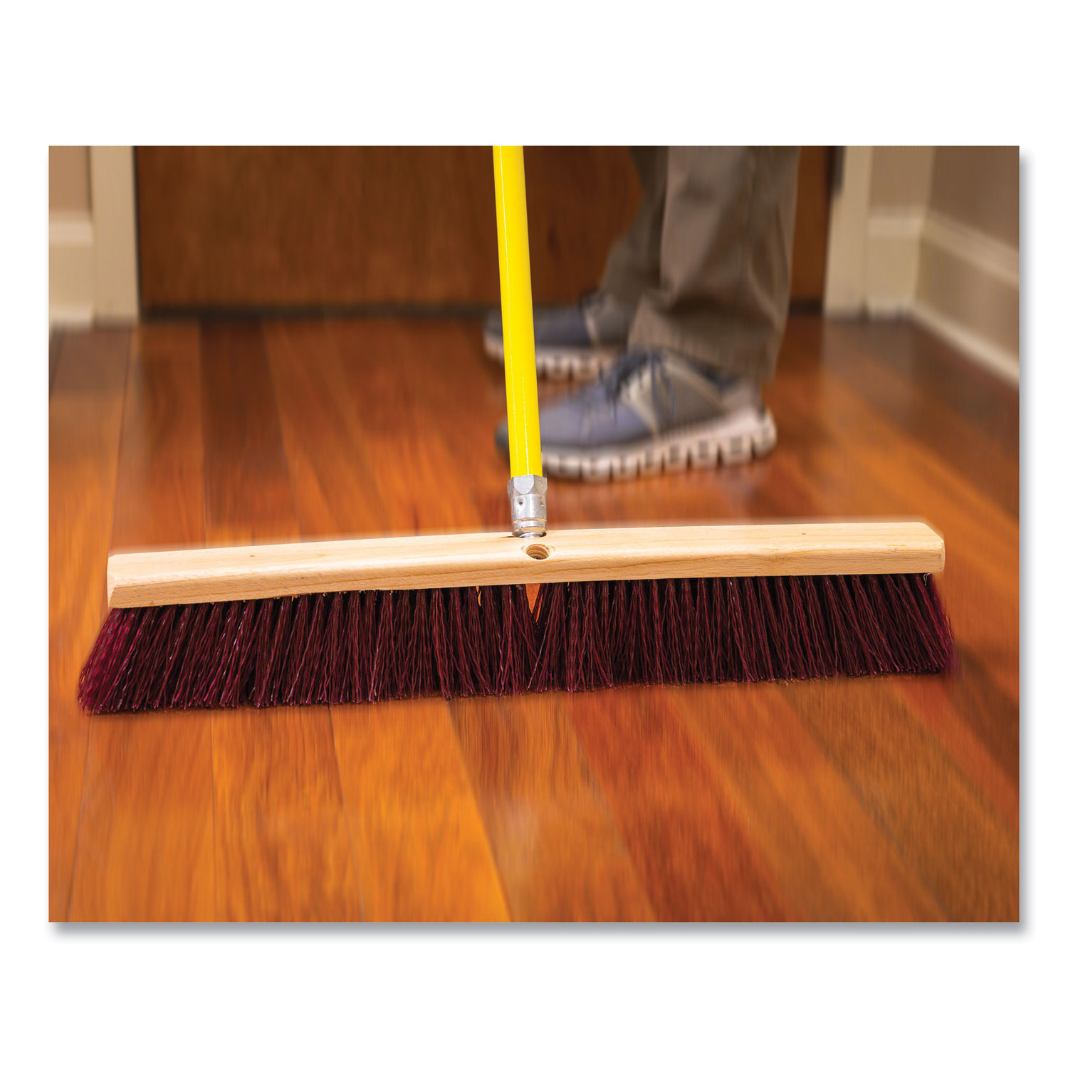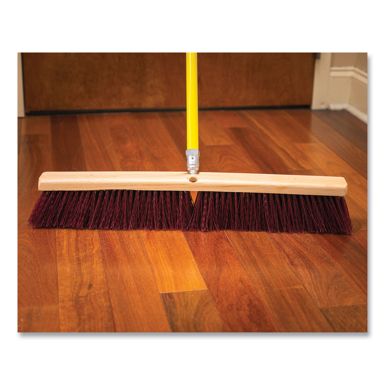 Poly Push Broom Kit, 24 x 60, Polypropylen Bristles, Metal Handle, Maroon/Yellow