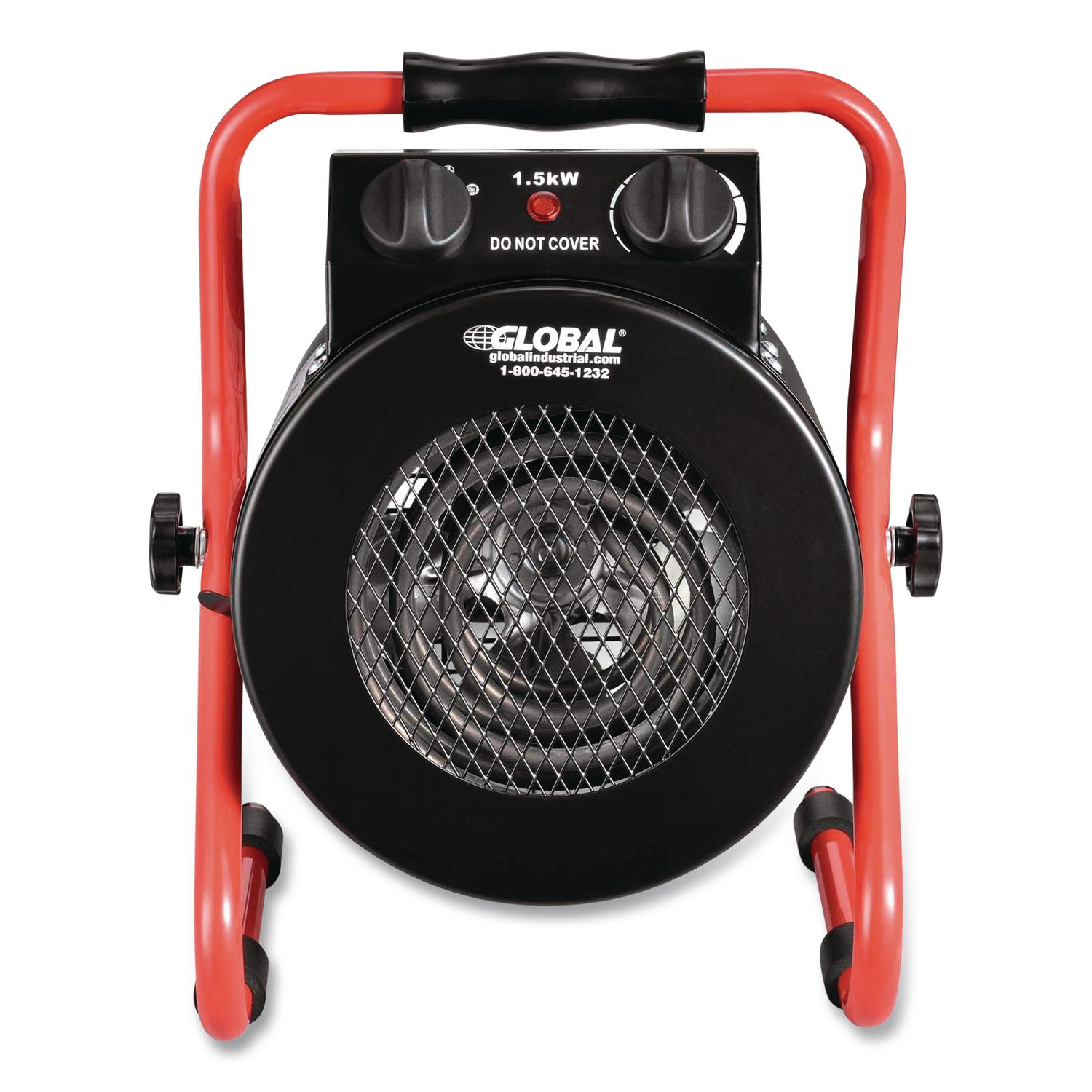 Provide convenient and efficient heating inside garages, warehouses, shop floors, and more with the Global Industrial® Portable Electric Space Heater. This space heater’s compact design allows for easy storage and is made of steel for long-lasting durability and dependability and includes floor guides for surface protection. The control knob provides dual operation functionality for cooling fan or high heat flexibility. Heater Type: Space Heater; Safety Features: Overheat Protection; Tip-Over Protection; Setting Range [Min]: 750 W; Setting Range [Max]: 1,500 W.