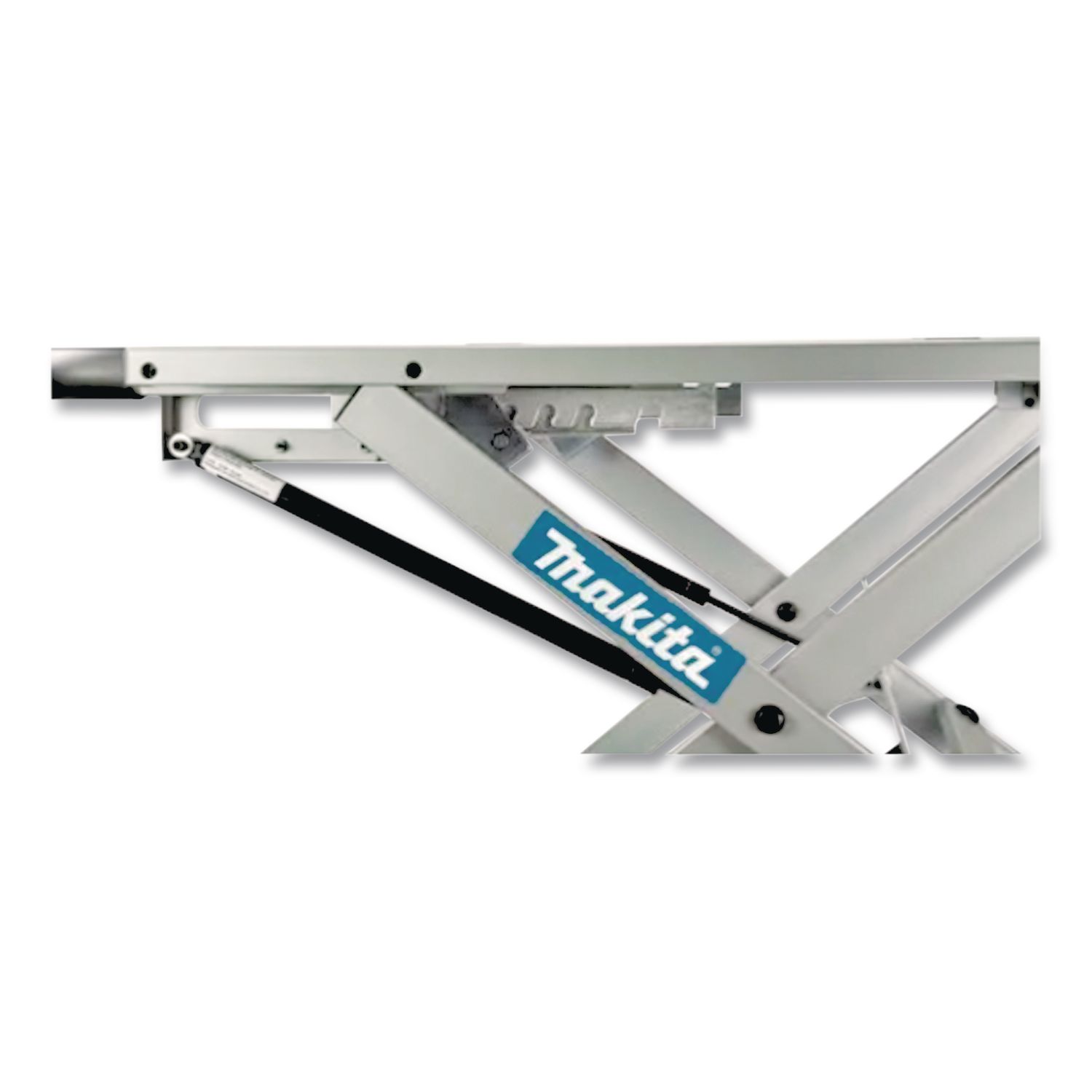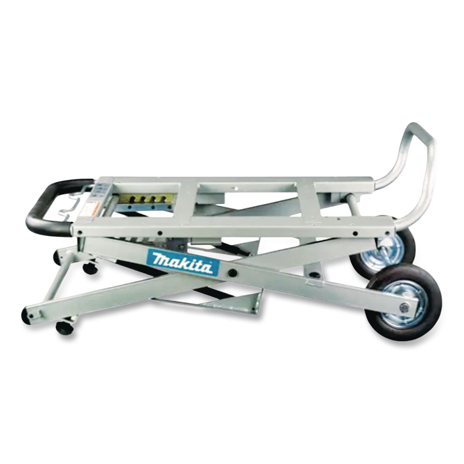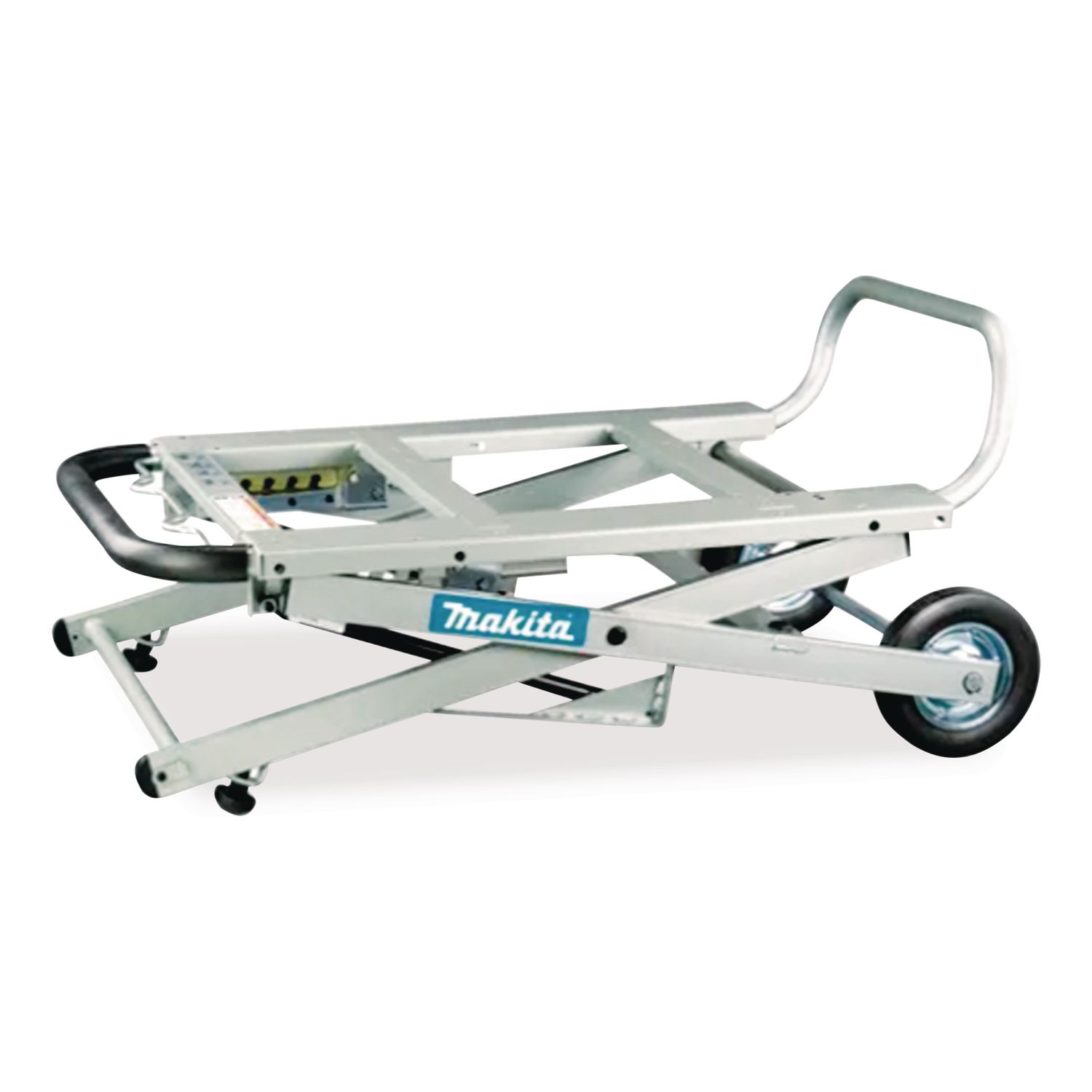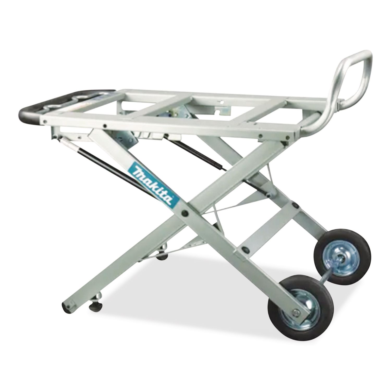 Fully adjustable with pressure-assisted cylinders on both sides. Hard rubber wheels will not go flat. Thick steel frame engineered to maintain rigidity. For use with Makita portable table saws and most competitive brand saws. Fence Material: Steel; Cordless: No; Length: 32″; Width: 44.5″.