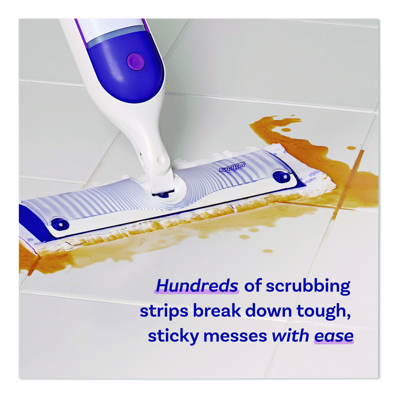 Mop smarter with the Swiffer PowerMop, an all-in-one mopping system that gives you a mop and bucket clean in half the time. The multi-surface mopping pads have 300+ scrubbing strips that reach deep into grooves and grout to remove sticky spills and daily dirt and grime. Mop Head Type: Wet/Dry Pad; Application: Floors; Mop Head Style: Microfiber; Mop Head Size: 15.4″ x 5.3″.