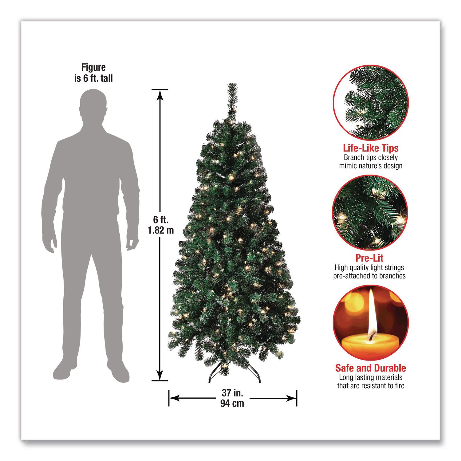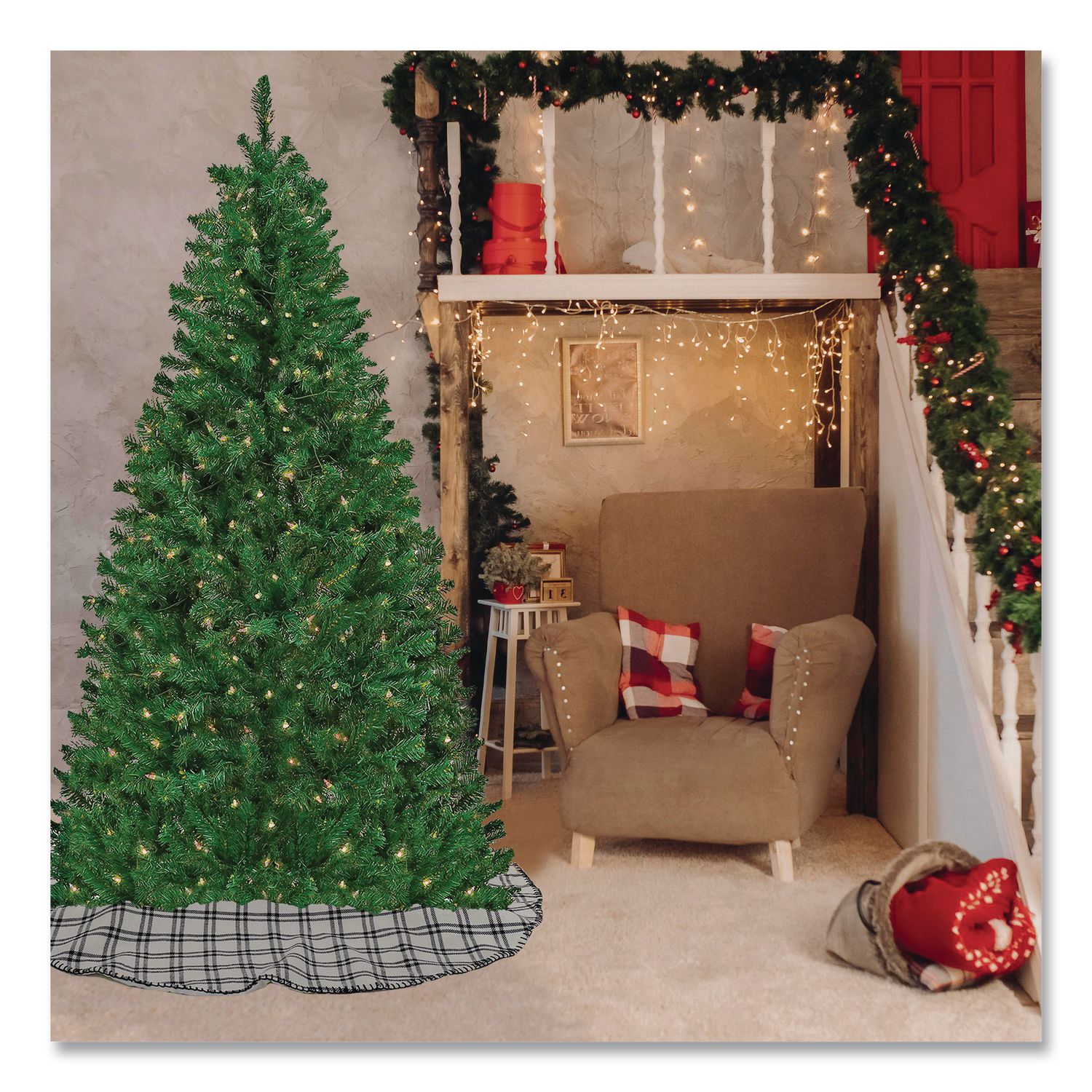 The Acacia is a full-bodied tree featuring a generous number of branch tips for holding holiday trimmings. It is pre-strung with 300 clear lights that remain lit even if a bulb burns out. This tree features hinged branches for ease of assembly. Sturdy folding stand included. Plant Type: Acacia; Plant Color: Green; Color Family: Green; Frosted: No.