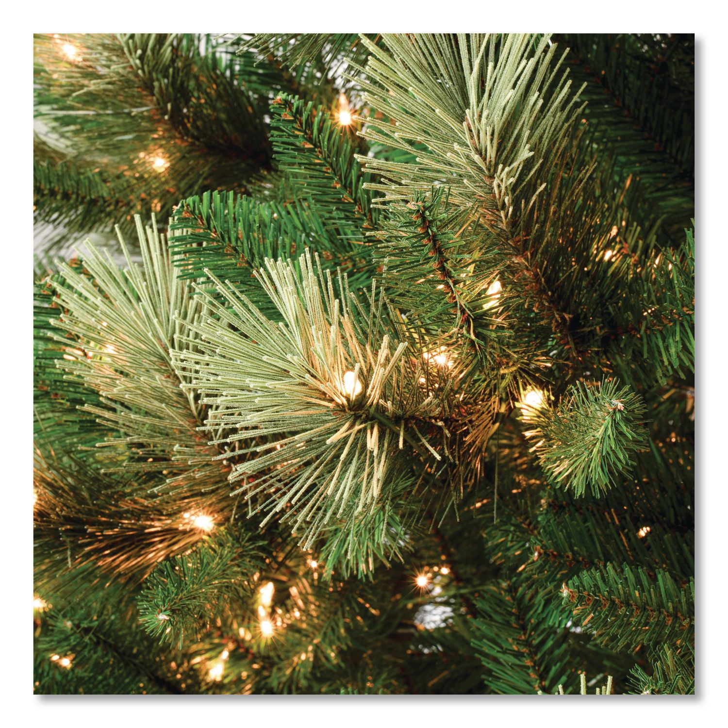 This Charelston Pine tree offers a slim profile tree that is great for display in corners, small rooms and areas with limited space. It features mixed bristle and cashmere branch tips for an overall softer appearance. It is pre-strung with 500 clear lights that remain lit even if a bulb burns out. This tree features hinged branch construction for ease of assembly. Sturdy folding metal tree stand is included. Plant Type: Pine; Plant Color: Green; Color Family: Green; Frosted: No.