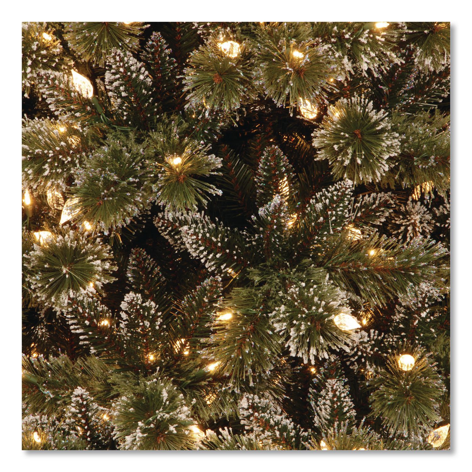The Glittery Bristle Pine Slim is a mixed branch tree featuring sparkled bristle and slim profile that’s great for display in areas with limited floor space. It is pre-strung with warm white low voltage LED lights that are energy-efficient and long lasting. This tree features hinged branch construction for ease of assembly. Sturdy metal tree stand is included. Plant Type: Pine; Plant Color: Green; Color Family: Green; Frosted: No.