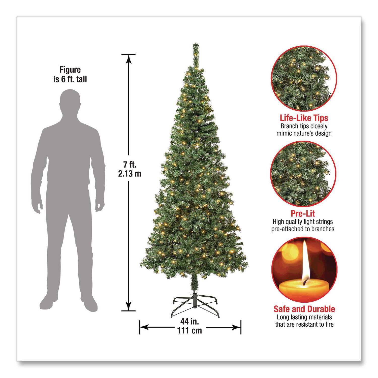 Pre-Lit Linden Spruce Slim Tree, 31″ x 31″ x 90″, Green Tree, Green Tree Stand