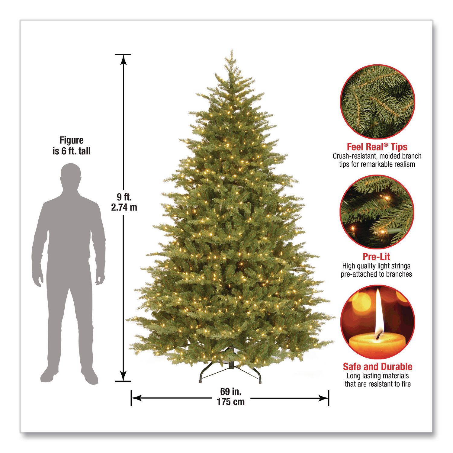 This Nordic Spruce tree features Feel Real® branch tip technology, creating a tree with remarkable realism. These crush-resistant branch tips are molded from real tree branches for an authentic living tree appearance. This thick, full-bodied tree is pre-strung with clear lights that remain lit even if a bulb burns out. The medium width of this tree may be a better fit in areas where floor space is limited. This tree features hinged branch construction for ease of assembly. Sturdy metal tree stand is included. Plant Type: Spruce; Plant Color: Green; Color Family: Green; Frosted: No.