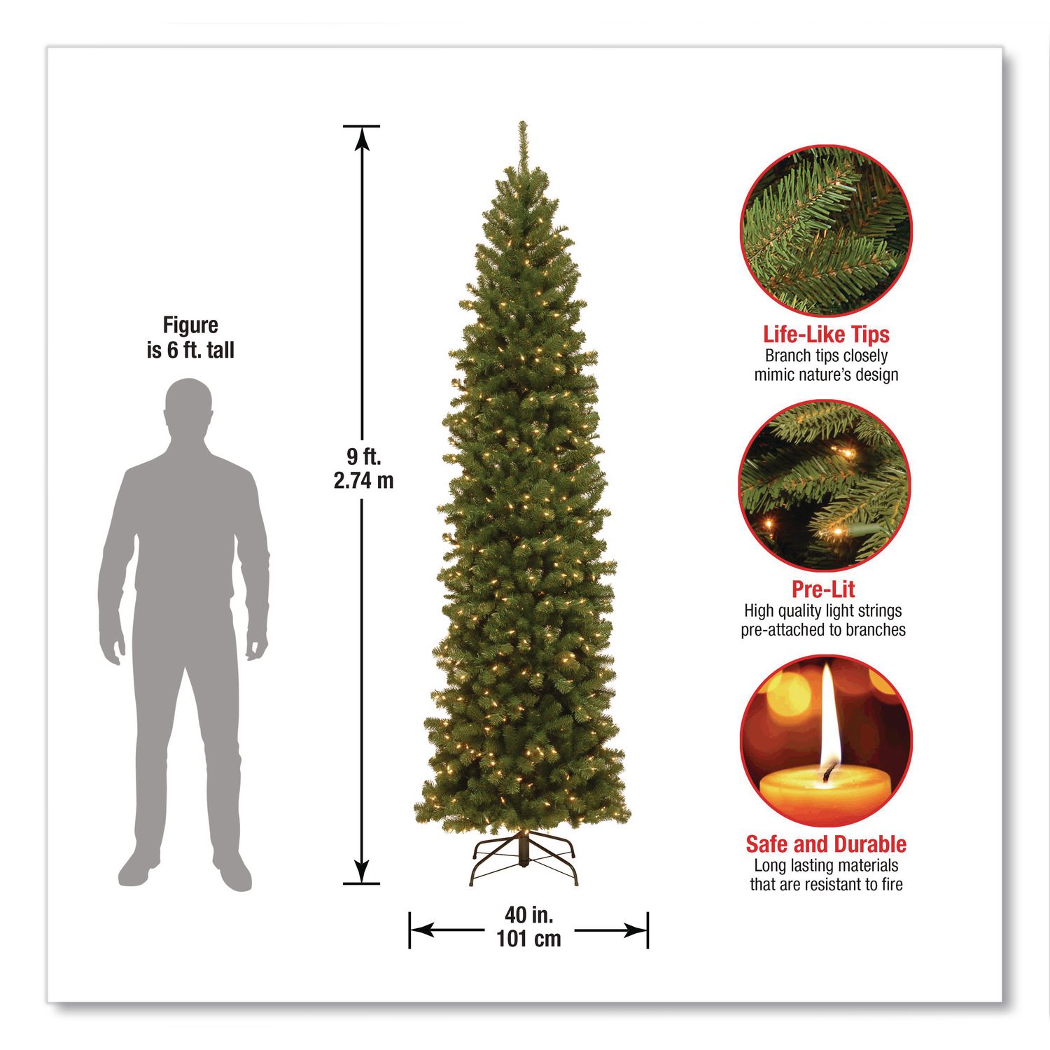 Pre-Lit North Valley Spruce Pencil Slim Tree, 40″ x 40″ x 108″, Green Tree, Green Tree Stand