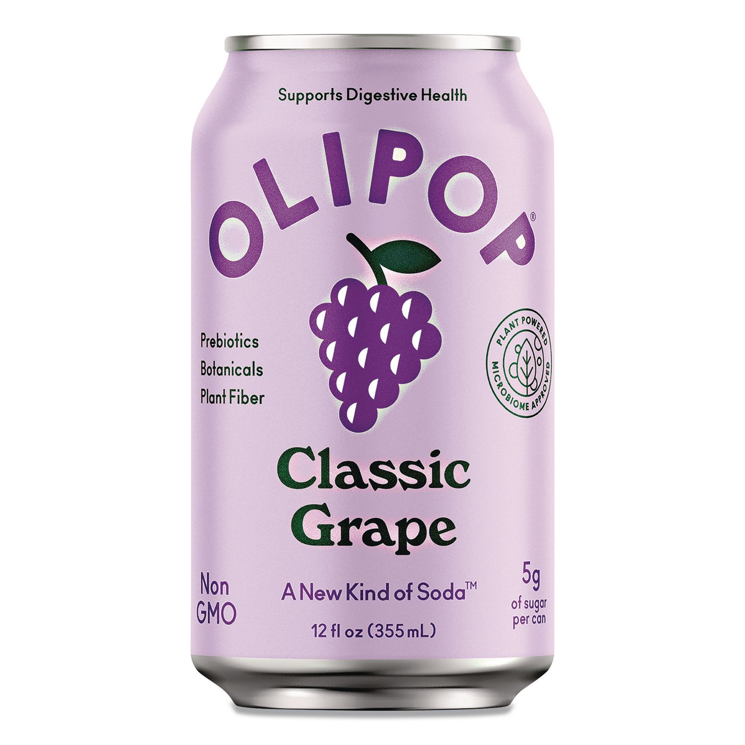 Finally, a kind of soda that’s delicious, refreshing, and actually good for you. OLIPOPĀ® combines the classic soda flavor you know and love with prebiotics, plant fiber and botanicals to support your microbiome and digestive health. It is more than just a soda. It’s a refreshing boost for your inner ecosystem. Beverage Type: Soft Drink; Flavor: Classic Grape; Product Packaging: Can; Volume Capacity: 12 oz.