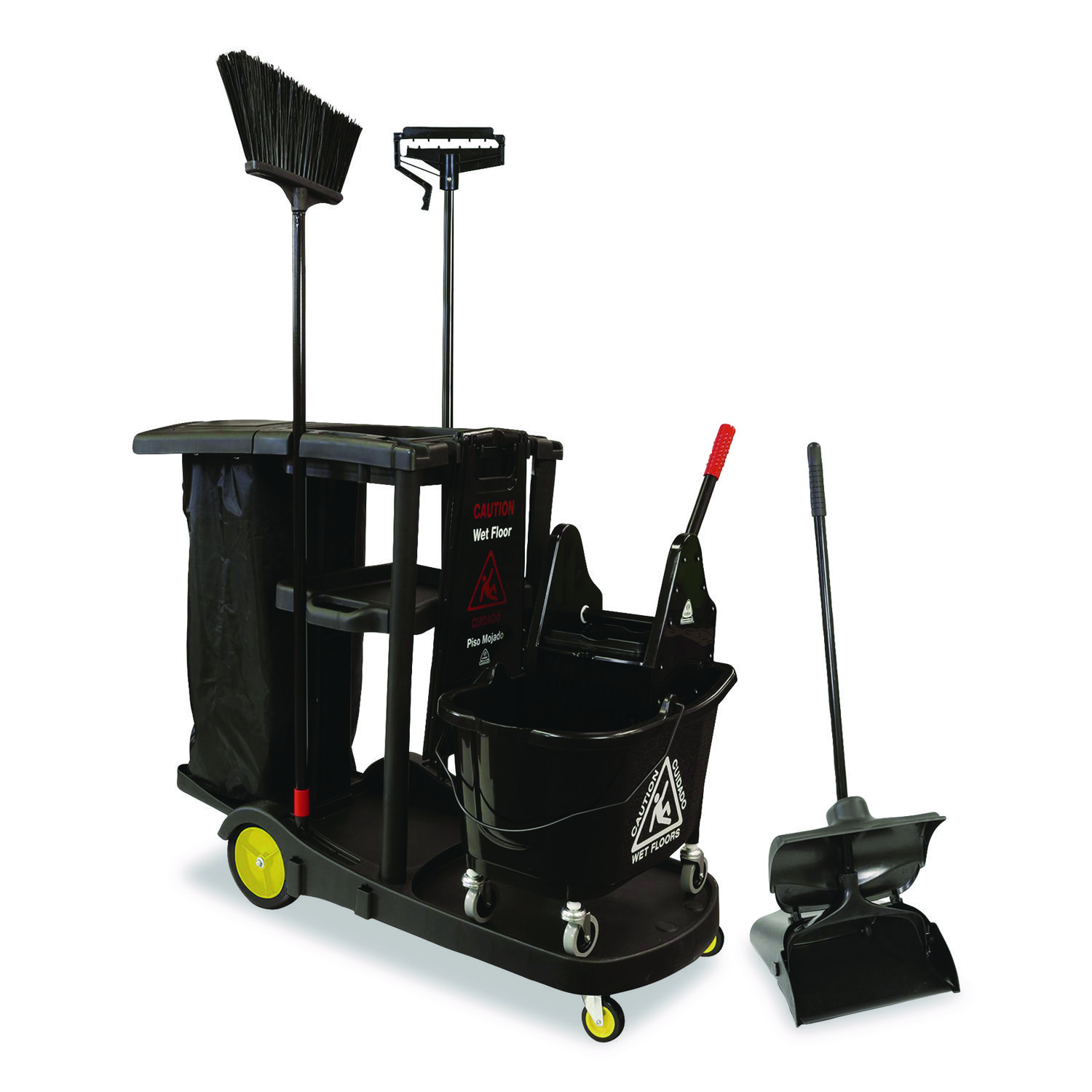 Premier Downpress Mop Bucket & Wringer has a 32 to 35 quart bucket and is made for use with up to 32 oz mops. The downpress wringer increases leverage and reduces fatigue. Diameter: 15.25″; Capacity Range (Volume): 32 to 35 qt; Material(s): Metal; Plastic; Rubber; Color(s): Black.