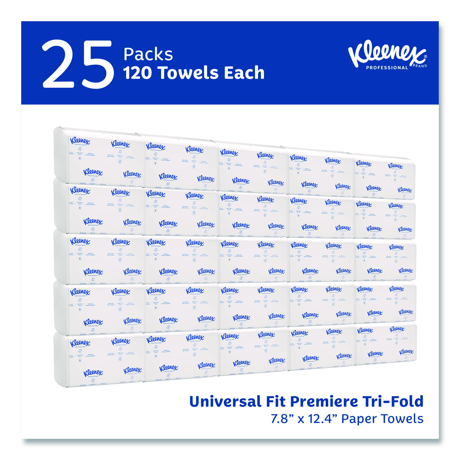 Make wasted paper towels a thing of the past with premium Kleenex® Premiere Folded Paper Towels. Their unique fold is designed for true one-at-a-time dispensing, every time. Now more gentle on the skin, they reduce tabbing, tearing and multiple dispensing, which results in less waste – always good for your business’ bottom line. Plus, they unfold as they dispense, so your guests will know they’re big enough to get the drying job done – with just one commercial paper towel. Featuring improved softness, Kleenex® Premiere Folded Bulk Paper Towels feature superior Absorbency Pockets™ with fast-drying ridges for excellent absorbency and performance. These smartly designed paper towels fit with most universal folded towel dispensers. They are an excellent value, with a guarantee to be cost neutral (versus C-fold towels). Kleenex® Premium folded towels are a smart, first-class choice for your business! Absorbency Pockets. Towel/Wipe Type: Folded Towels; Fold Types: Multi-Fold; Material(s): Paper; Number of Plies: 1.