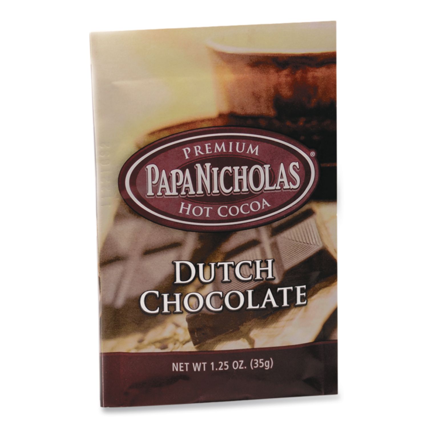 An indulgent chocolate experience. Inspired from hot cocoa that was made the old-fashioned way: on the stovetop with natural ingredients. Personal guarantee for quality and freshness. So go ahead and treat your office to a rich delicious mug of this premium cocoa! Beverage Type: Hot Cocoa; Flavor: Dutch Chocolate; Product Packaging: Packet; Capacity (Weight): 1.25 oz.