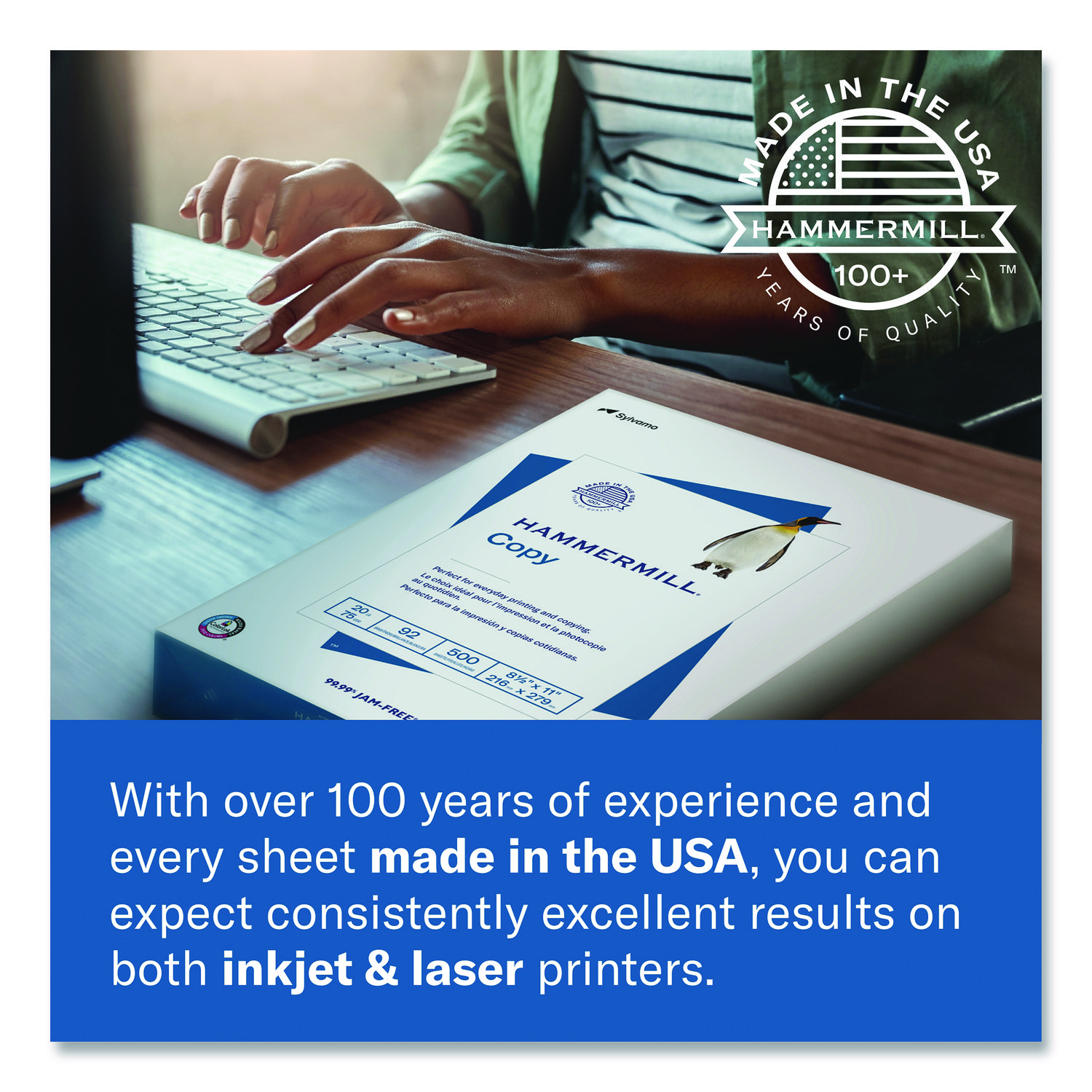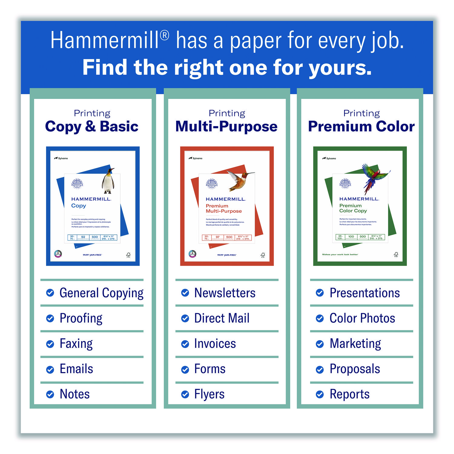 Produce sharp, clear images on both color and monochrome laser-based equipment with Hammermill® Premium Laser Print Paper. Smooth finish and superior image contrast help ensure that you make a great impression every time. A must have for everyone, from home-office to design professionals, it’s ideal for color copies, proposals, reports, layouts and letters. Backed by the 99.99% JAM-FREE® Guarantee and manufactured acid-free for archival-quality longevity. Sheet/Roll Size: 8.5 x 11; Paper Basis Weight (lb): 24 lb Bond; Paper Grade (gsm): 90 gsm; Paper/Media Color(s): White.