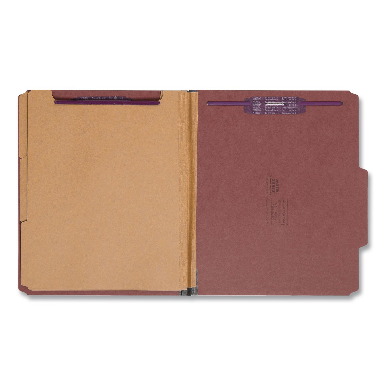 Minimize the time you spend searching for documents and increase the efficiency of your filing system. Smead’s Pressboard Classification File Folders with SafeSHIELD Fasteners make it easy to organize your critical information by providing a number of different filing surfaces that can be used to separate your documents in subcategories and keep them in proper sequence. Purposefully designed to provide a solution for the most common fastener issues, our Pressboard Classification File Folders feature SafeSHIELD Coated Fasteners that help you avoid hand injuries, ripped papers and excessive fastener crinkling. The 2″ expanding spine made of tear resistant material offers greater storage capacity for bulky projects. Compatible with our Viewables Multipurpose Labels (sold separately). Folder Size: Letter; Total Number of Dividers: 3; Total Number of Fasteners: 8; Cover Tab Style: Top Tab.
