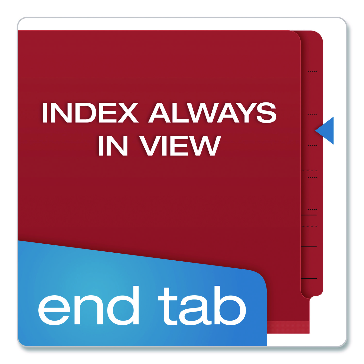 Get color-coding efficiency, pressboard durability and organizational ease all in one folder. Ideal for sequentially organizing case files, contracts, bids, invoices and more, Pendaflex® Colored Pressboard End Tab Classification Folders feature super-strong pressboard covers, durable kraft dividers and embedded fasteners to ensure your paperwork remains safely contained. Distinctive exterior colors also enable color-coding by category to help streamline filing and improve file-retrieval times. Folder Size: Letter; Total Number of Dividers: 1; Total Number of Fasteners: 4; Cover Tab Style: End Tab.