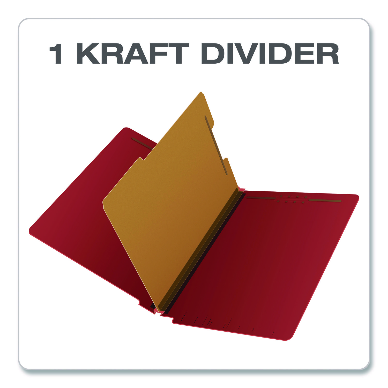 Pressboard End Tab Classification Folders, Straight Tab, Expands 1.75″, 1 Divider, 4 Fasteners, Letter Size, Red, 10/Box