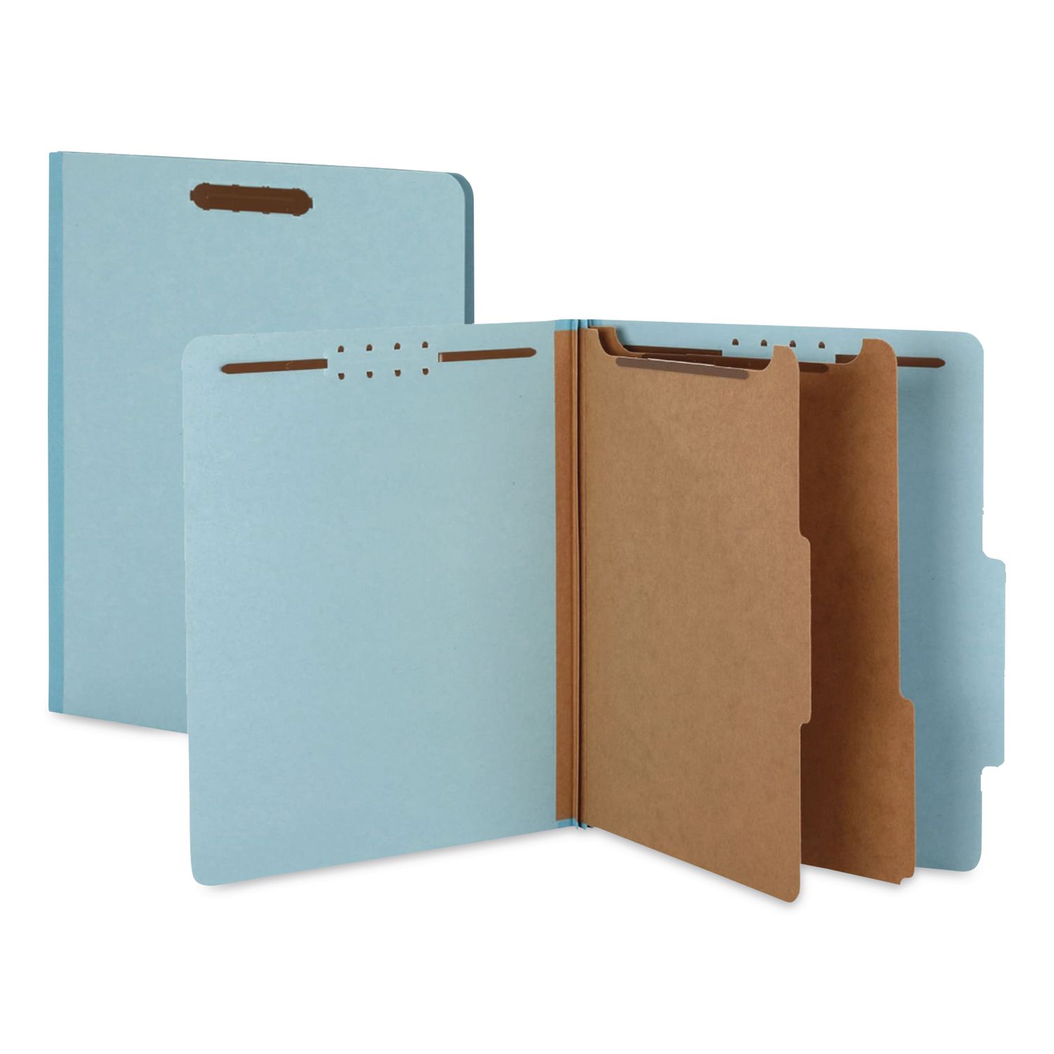 Pressboard Top Tab Classification Folders, 2/5-Cut Tab, Expands 1.75″, 1 Divider, 4 Fasteners, Legal Size, Light Blue, 10/Box