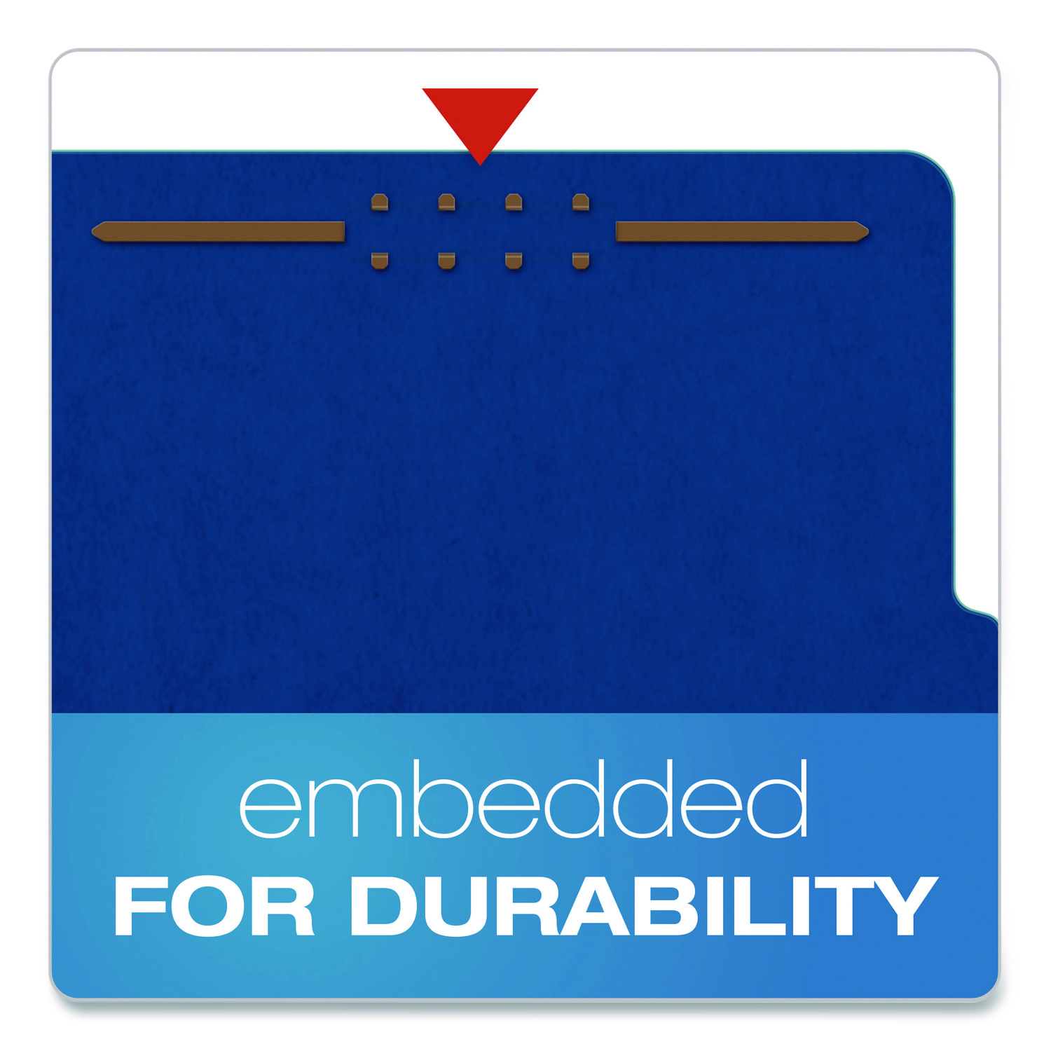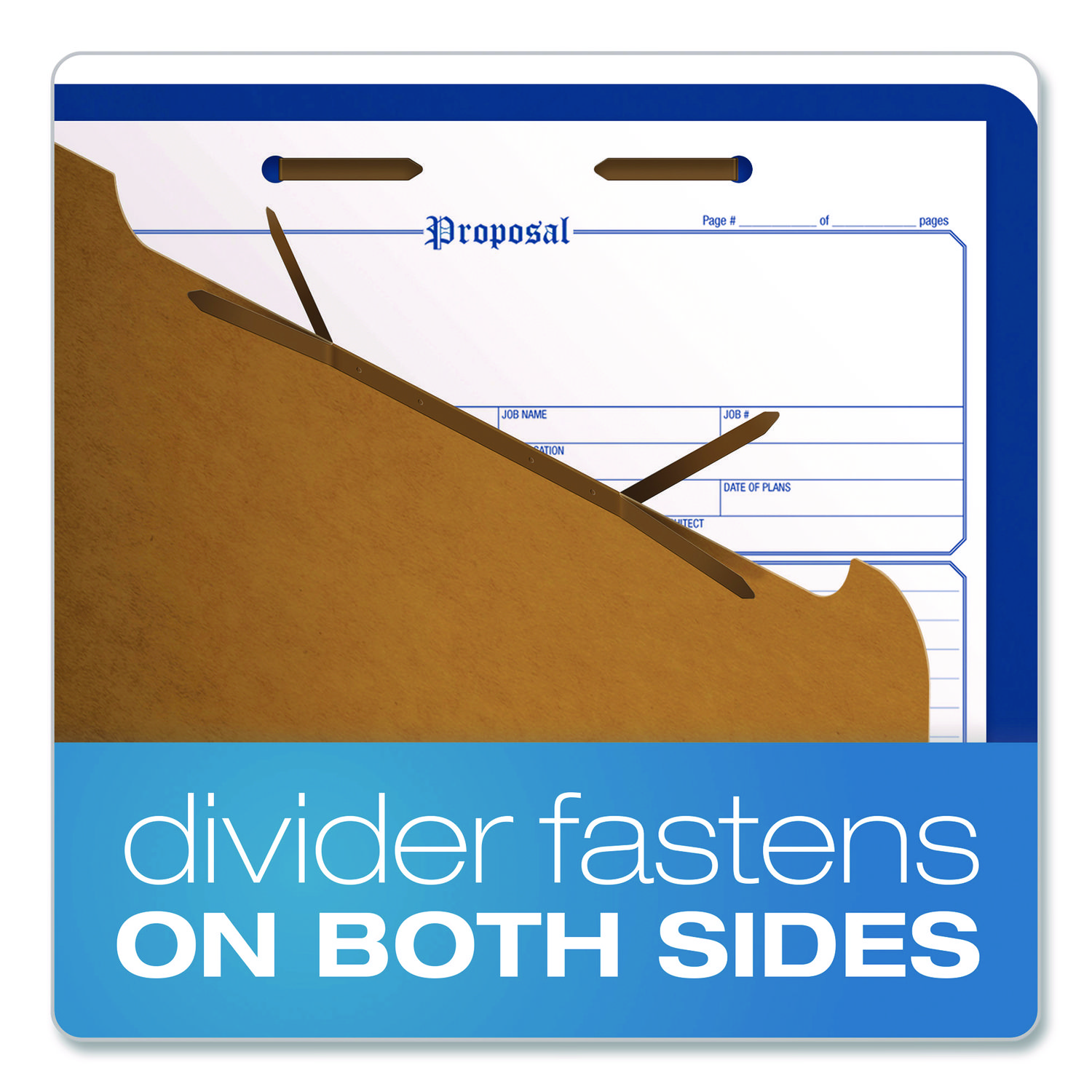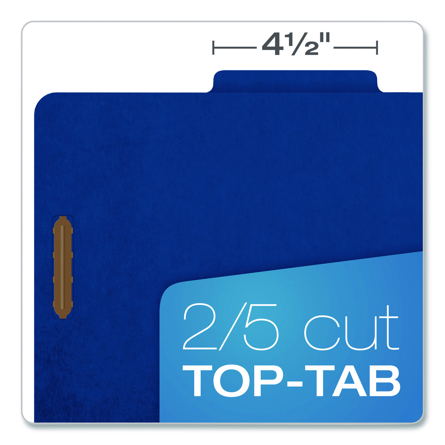 Pressboard Top Tab Classification Folders, 2/5-Cut Tab, Expands 1.75″, 1 Divider, 4 Fasteners, Letter Size, Dark Blue, 10/Box