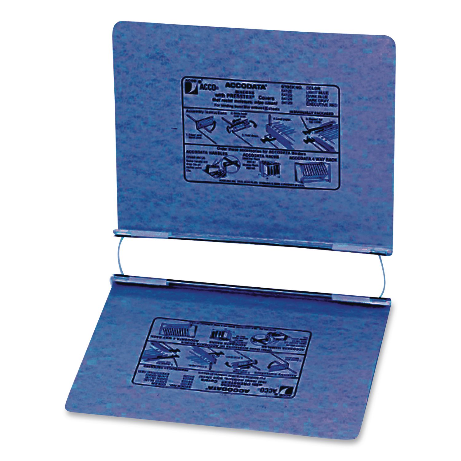 Ideal for organizing and storing lots of information, PRESSTEX® data covers bind up to 6″ of burst or unburst sheets. Retractable storage hooks allow for use as a hanging binder and the embossed, PRESSTEX® covers are acrylic-coated to resist moisture. Flexible top and bottom loading option makes it super easy to use. Cover contains recycled materials. Bound On 11″ Side—Designed for use with sheets that are still attached in continuous form with accordion fold. Binder Type: Post; Binder Style: Non-View; Binder Size Capacity: 6″; Binder Color(s): Dark Blue.