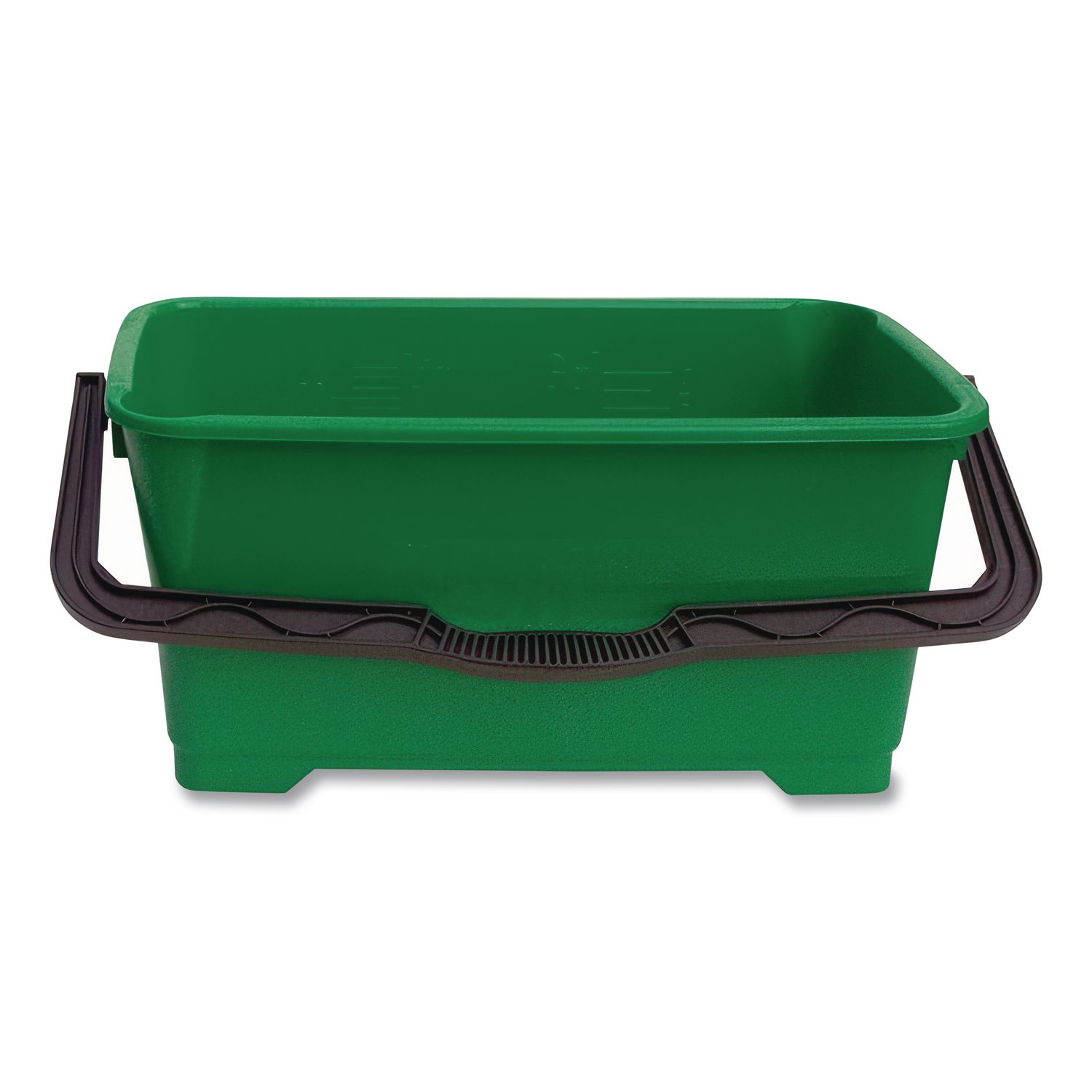 Heavy duty bucket holds over six gallons and 18′ t-bar. Ergonomic handle and large footprint increase stability and prevent spills. Includes measuring units and rounded pour spouts for easy emptying. Capacity Range (Volume): 6 gal; Material(s): Plastic; Color(s): Green; Mop Head Size Range: General Mopping.