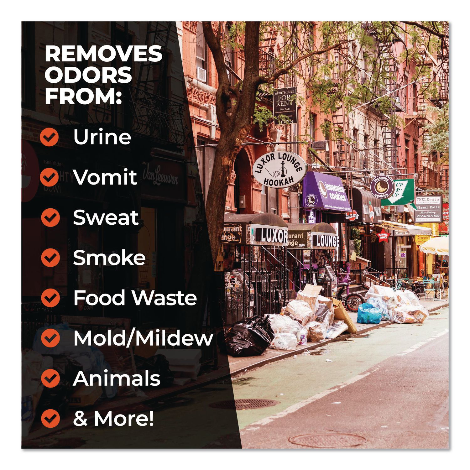 Simple GreenĀ® Pro Odor Control neutralizes odors using advanced natural enzymes and microorganisms. The long-lasting, concentrated formula works on wet or dry surfaces, indoors and out. Use anywhere organic odors form. Neutralizes foul smells in public restrooms, fleet vehicles, dumpsters, farms, gyms, locker rooms, animal quarters, motels, schools and more. Eliminates odors caused by decayed vegetation, food, garbage, graywater, animals, manure, mold, mildew, skunk, sweat, urine, vomit and other stubborn smells. Keeps areas smelling fresh. Scent: Herbal; Physical Form: Liquid; Application: Animal Quarters; Dumpsters; Farms; Fleet Vehicles; Gyms; Locker Rooms; Motels; Public Restrooms; Schools; Volume Capacity: 32 oz.