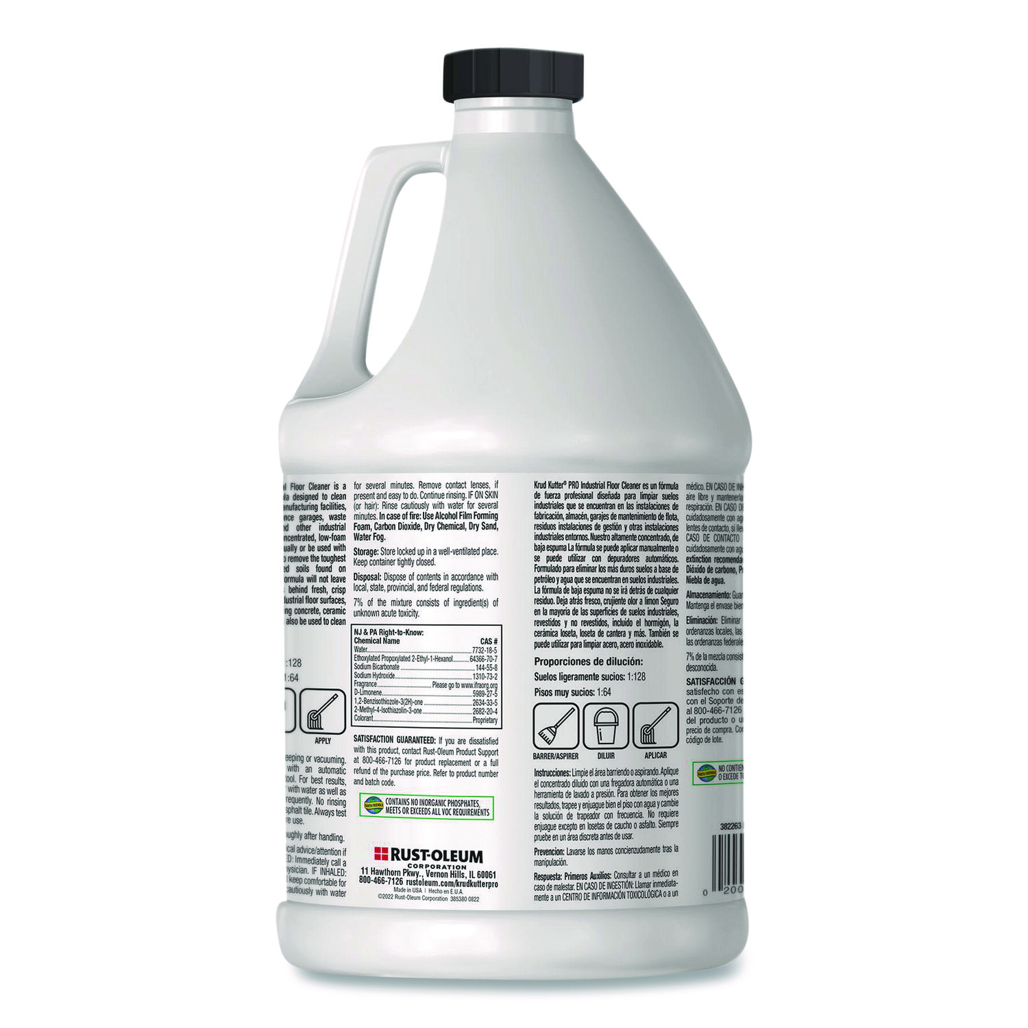 Rust-Oleum Pro Heavy Duty Low Foam Floor Cleaner is a professional strength formula designed to clean industrial floors found in manufacturing facilities, waste management facilities, transportation maintenance facilities, warehouses and other industrial settings. Application: Most Commercial & Industrial Flooring Surfaces; Applicable Material: Cement/Concrete; Ceramic Tile; Laminates; Metals; Quarry Tile; Chemical Compound: Ethoxylated Propoxylated 2-Ethyl-1-Hexanol; Sodium Hydroxide; Dirt Types: Grime; Petroleum-Based Soils; Water-Based Soils.