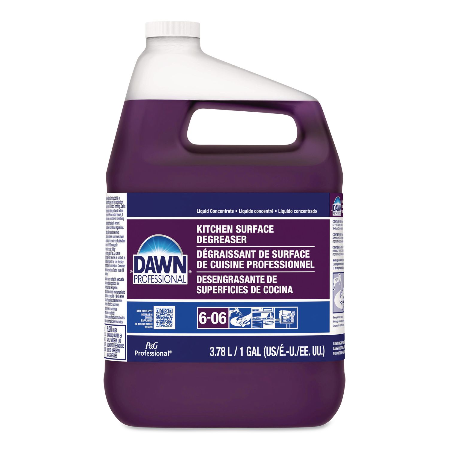 More Power. Less Scrubbing. Introducing Dawn® Professional Multi-Surface Heavy Duty Degreaser with stronger grease cleaning formula. This degreaser cuts through tough grease fast and is safe for food contact surfaces when followed by rinsing with water. Great for tough buildup on surfaces, like range hoods, ovens, walls, floors, drive-thru pads and fuel islands. Closed Loop. Application: Degreaser/Cleaner; Applicable Material: Corral Area; Drive-Thru Pads; Dumpsters; Fryers; Hard Surface; Ovens; Parking Lots; Range Hoods; Sidewalks; Walls; Chemical Compound: Water (7732-18-5); C12-14 Pareth (68439-50-9); Sodium Hydroxide (1310-73-2); Ethanolamine (141-43-5); Trisodium Dicarboxymethyl Alaninate (164462-16-2); Sodium Cumenesulfonate; Fragrances; Colorants; Dirt Types: Greasy Soils; Heavy Cooking Grease/Oil; Polyerized Animal Grease.