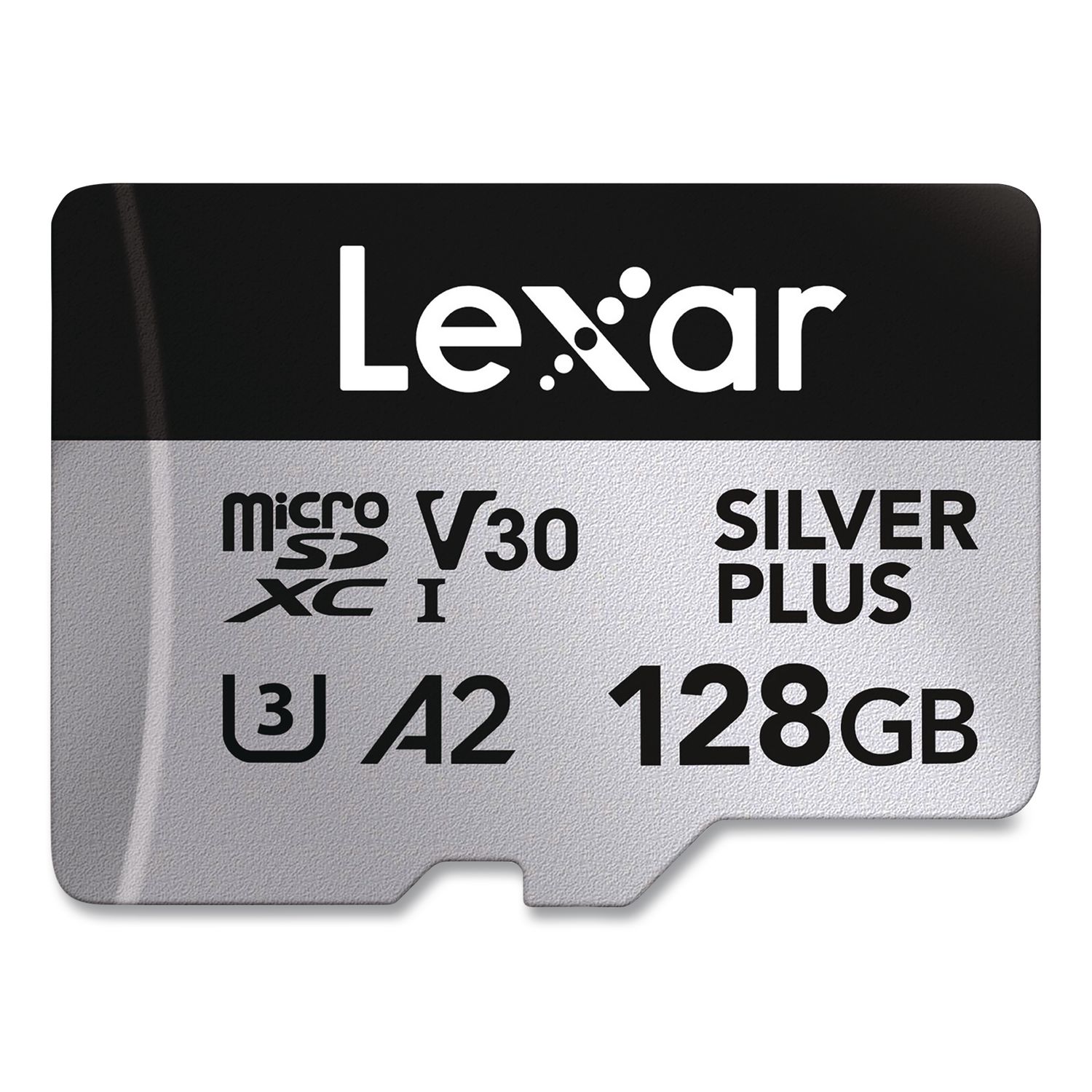Designed for your action cameras, drones or an Android smartphone, the Lexarâ„¢ Professional SILVER Series microSDXC UHS-I card lets you quickly capture and transfer high-quality photos, including Full HD and 4K UHD videos The card is rated U3, V30, and A2 for high-speed performance, giving you the speed and storage you need to capture more adventures on the go. With Adapter. Memory Card Compatibility: microSDXC; Storage Capacity: 128 GB; Memory Cards Class Type: UHS-I, V30 Class 10.