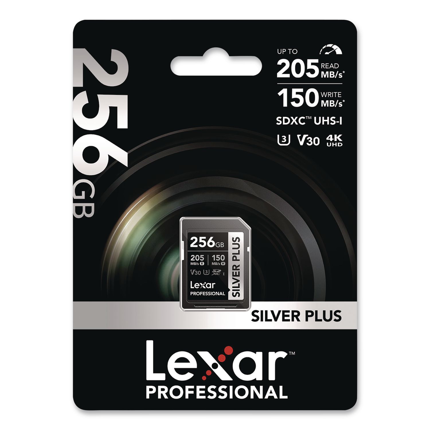 Designed for your DSLR or mirrorless camera, the Lexarâ„¢ Professional SILVER Series SDXC UHS-I card lets you quickly capture and transfer high-quality photos, including Full HD and 4K UHD videos. This card dramatically accelerates workflow from start to finish, maximizing your creativity. 205MB/s Read Speeds and 150MB/s Write Speeds. Memory Card Compatibility: SDXC; Storage Capacity: 256 GB; Memory Cards Class Type: UHS-I V30 U1 Class 10.