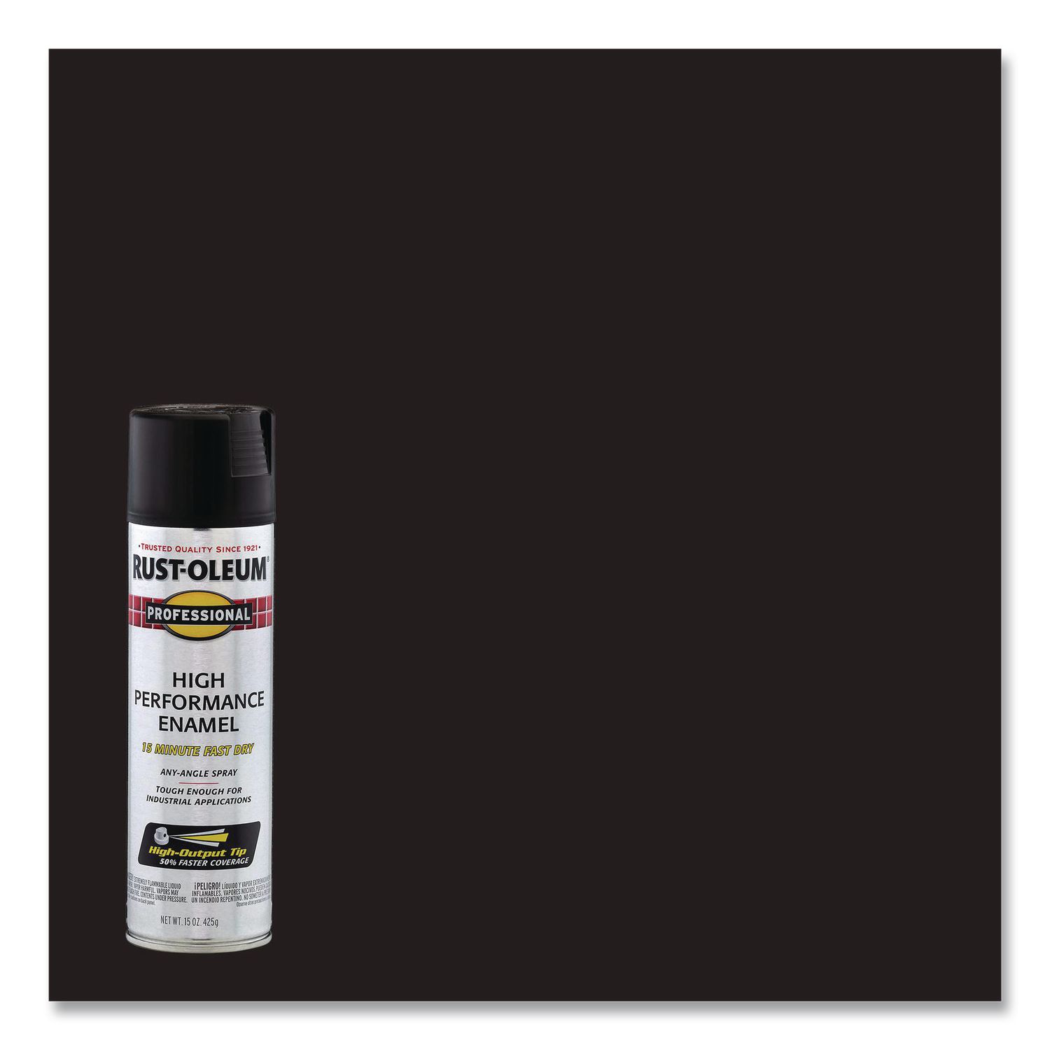 Rust-Oleum® Professional High Performance Enamel Sprays provide superior coverage, hiding and corrosion protection. They can be applied to metal, wood, concrete and masonry. Designed to resist abrasion, prevent corrosion, and retain its color in the toughest environments. Paint Sub-Category: Spray Paint; Intended Application Environment: Interior/Exterior; Finish/Sheen: Flat; Color(s): Black.