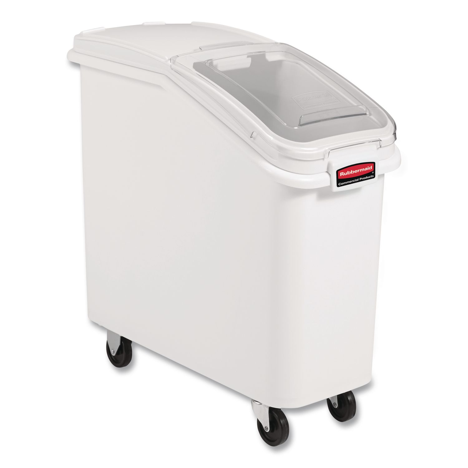 The Rubbermaid® Commercial ProSave™ Food Storage Lid with Scoop is designed to for use with Rubbermaid® Commercial ProSave™ bulk food storage containers. With a hook system that allows the scoop to be easily stored inside, this food storage lid works in commercial food service and garden centers. Constructed from durable industrial grade structural web plastic, this lid is easy to clean and keep sanitary. For 3600-88 ProSave™ Bin. Food Container Type: Ingredient Bin/Pail Lid; Material(s): Structural Web Plastic; Material Type: Plastic; Color(s): Clear.