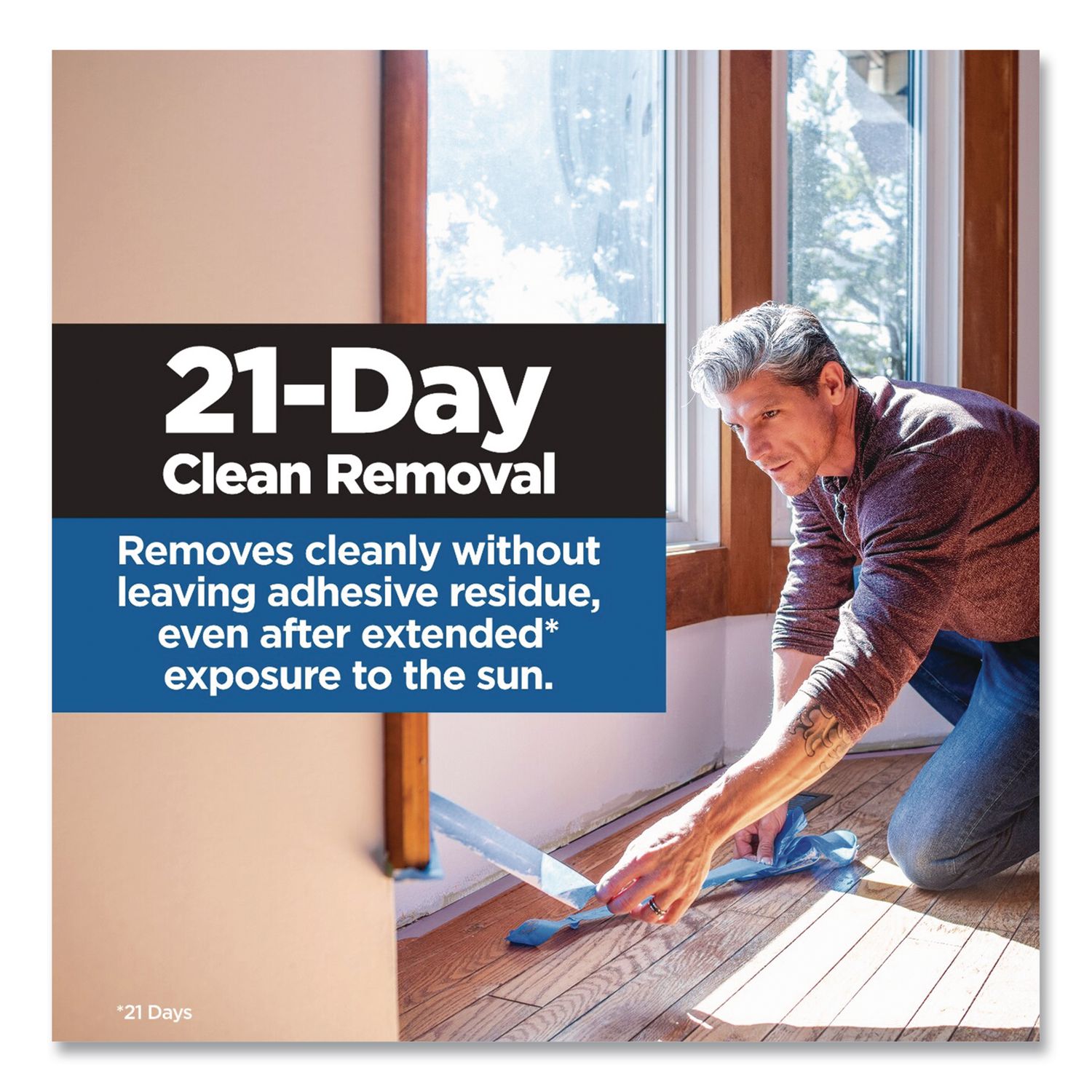 Provides our sharpest paint lines yet thanks to our new Edge-Lock+™ technology. Designed to handle both indoor and outdoor projects, this tape provides 2X better hold than our original Edge-Lock+™ technology, sealing out paint to leave consistently sharp lines across multiple paint types and finishes. Whether you’re protecting drywall, trim, baseboards, painted walls, wood, tile flooring or glass windows, this versatile painting tape can stay on surfaces for up to 21 days and then remove easily without leaving any sticky residue behind, even after exposure to the sun. Grade: Medium Duty; Core Size: 3″; Dispenser Included: No; Adhesive Material: Acrylic.