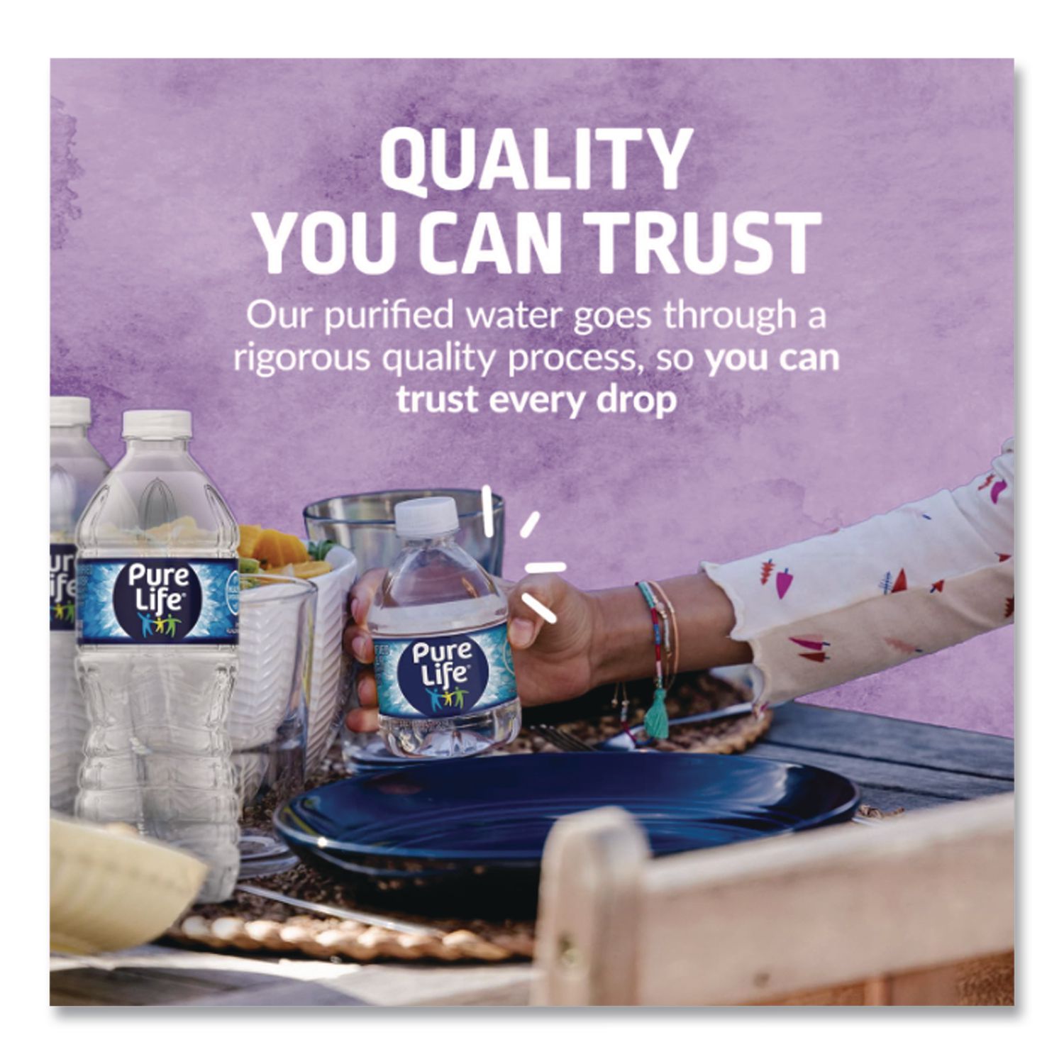 Embrace Pure Life to enjoy crisp, clean and refreshing water that goes through a multi-step purification process which includes reverse osmosis. It is then enhanced with a unique blend of minerals for a balanced flavor. Beverage Type: Purified Water; Product Packaging: Bottle; Volume Capacity: 101.4 oz; Quantity: 6/Pack.