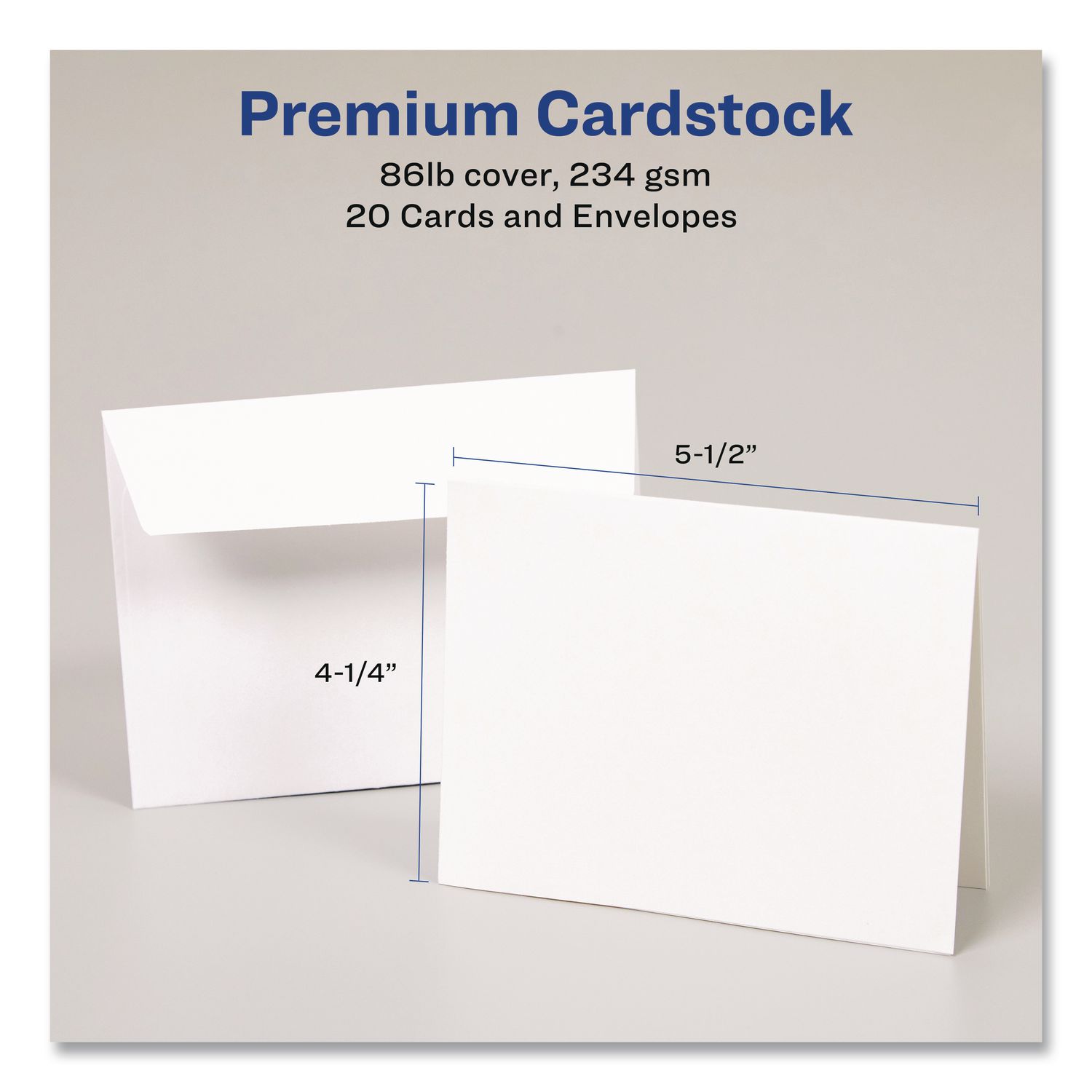 Quarter-Fold Greeting Cards with Matching Envelopes, 80 lb, 5.5 x 4.25, Matte White, 1 Card/Sheet, 20 Sheets/Pack