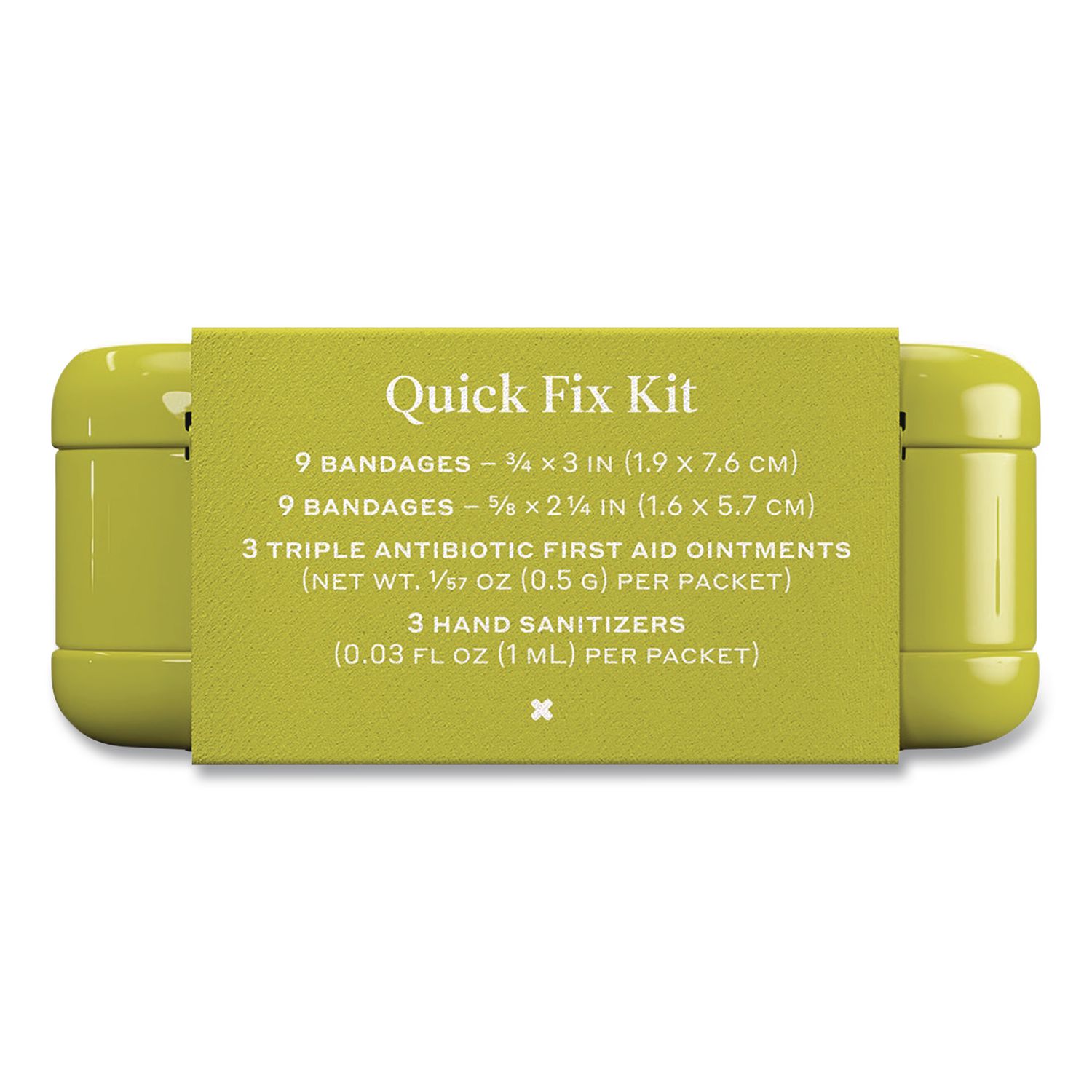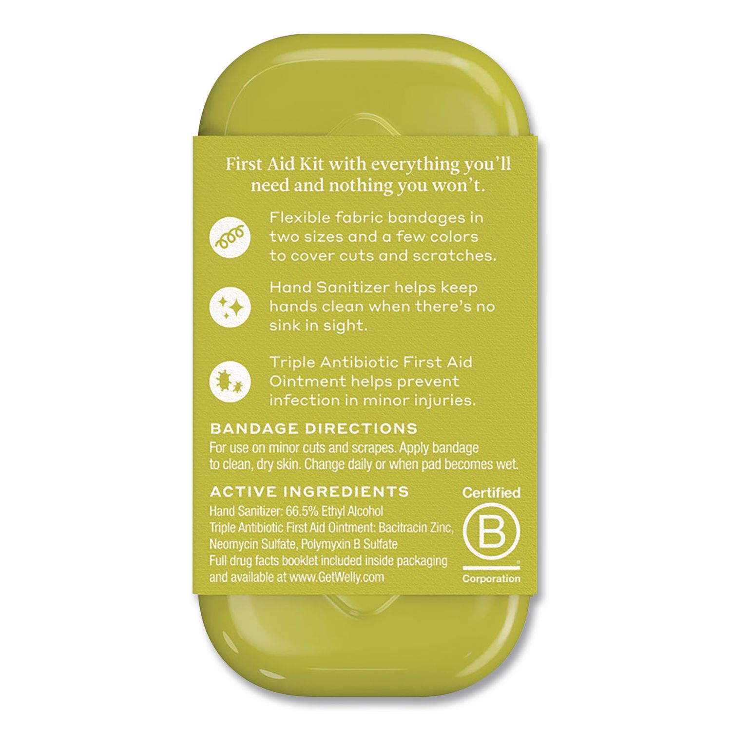 welly® Quick Fix Kit will never leave you stranded. This handy portable tin is packed with colorful first aid essentials like bandages and ointments for every adventure ahead. Keep one on hand for wherever life takes you. System Capacity: 1 Person System; Number of Pieces: 24; Contains: (9) 0.75″ x 3″ Bandages; (9) 0.63″ x 2.25″ Bandages; (3) Antibiotic First Aid Ointment Packets, 0.5 g; (3) Hand Sanitizer Packets, 0.03 oz; Case Material: Tin.